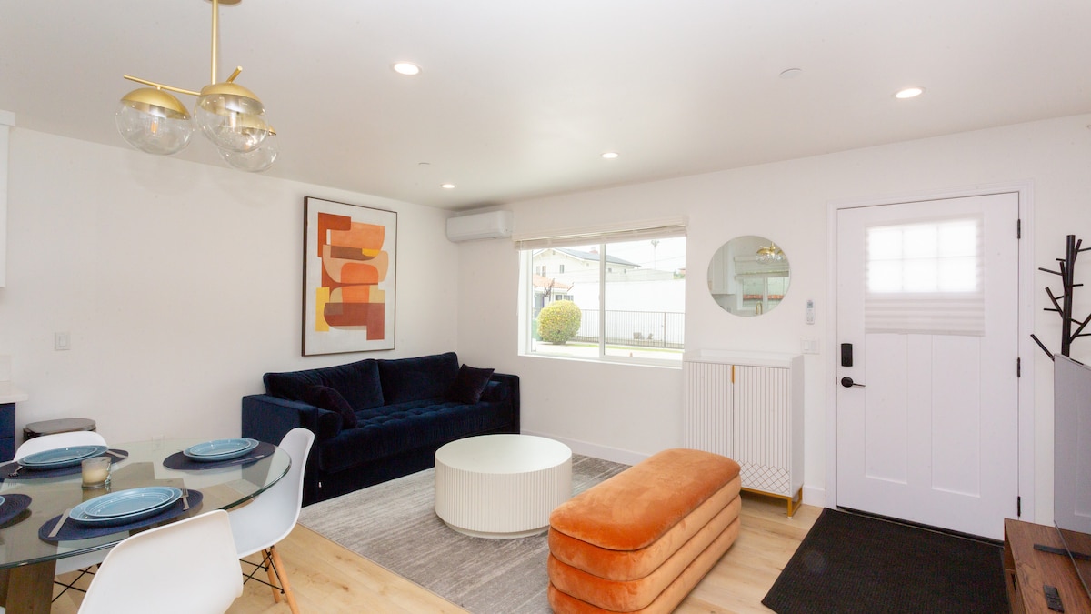 Cette maison d'une chambre et une salle de bain se trouve à 15-20 min en voiture du Dodger Stadium. Construite au début des années 1940, son décor est un clin d'œil au charme intemporel de cette époque. Les rideaux occultants améliorent les espaces de couchage pour une nuit de sommeil reposante. Le bar à boissons dispose d'un grand placard, d'un mur d'accent avec dosseret et d'étagères ouvertes et ouvertes, fabriquées à partir de l'ancien avocat qui a autrefois honoré le patio. Le patio a depuis été transformé en mobilier d'extérieur, ce qui le rend parfait pour des moments tranquilles à l'extérieur.
