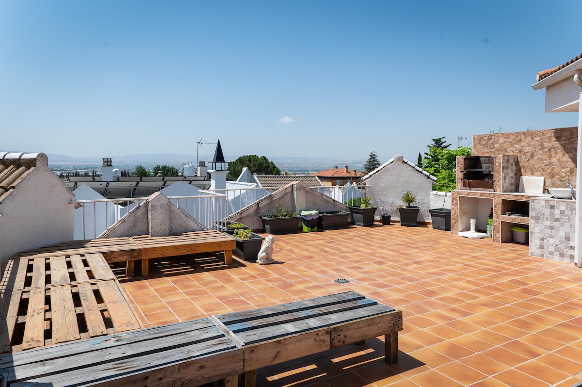 À seulement 10 minutes du centre historique (Alhambra - Albaicín), ce charmant et lumineux chalet de nouvelle construction avec piscine chauffée offre la combinaison idéale de confort et d'emplacement pour les familles et les groupes. Parfait pour se détendre après avoir exploré la ville ou profiter de la nature. - À 10 minutes du centre historique (Alhambra - Albaicín). - 1 minute de l'arrêt de bus à pied. - 10 minutes de l'aéroport. - Sierra Nevada et les plages de la Costa Tropical, tous deux à 45 minutes