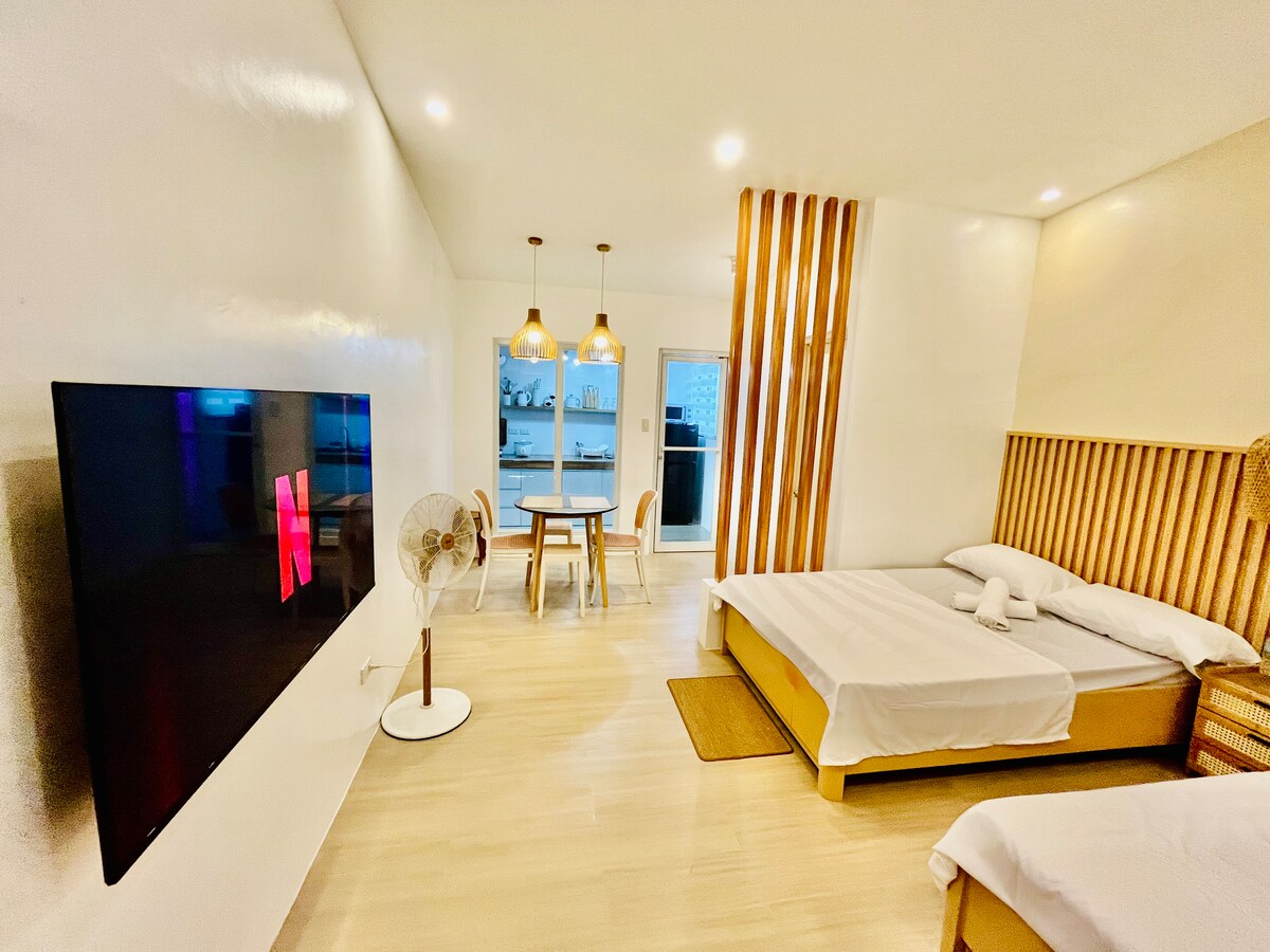 Ce logement paisible offre un séjour détente pour toute la famille. Profitez d'une expérience élégante, votre maison loin de chez vous ! Cette spacieuse propriété de type condominium d'une chambre est prête à accueillir vos vacances à Nueva Ecija, idéalement situé dans un espace pouvant accueillir jusqu'à 5 personnes et se compose d'un lit Queen Size avec lit gigogne avec matelas confortable, TV connectée et accès Wifi 100mpbs unli, table à manger 6 places, cuisine avec réfrigérateur, cuisinière à induction, chauffe-eau multipoint. Il y a une vue magnifique depuis le balcon.