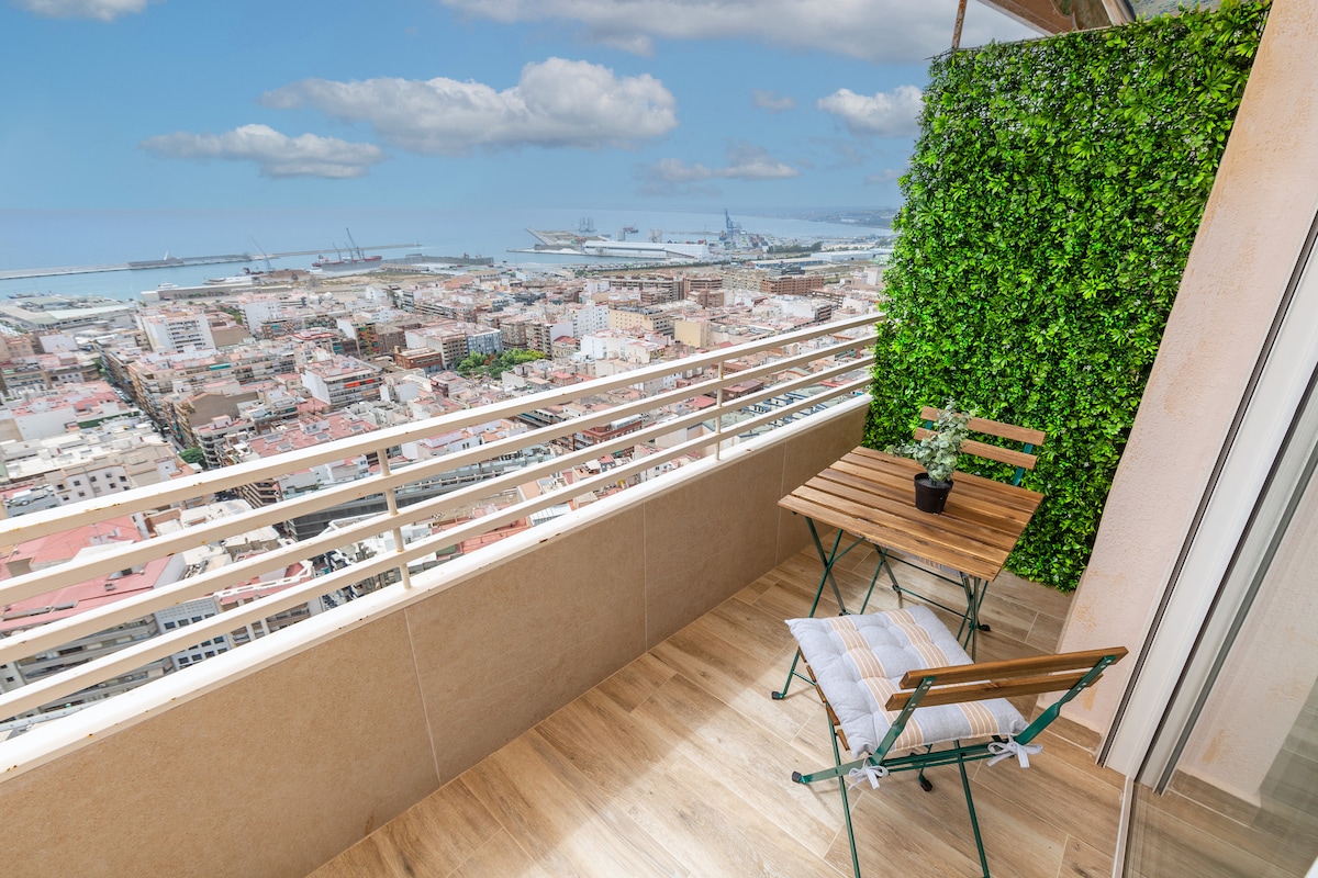 Magnifique loft-terrasse dans un immeuble du XIXe siècle entièrement rénové. Il dispose d'une grande terrasse sur le toit avec une vue imprenable sur la ville et la végétation, avec un accès direct depuis le séjour par un escalier japonais à marches alternées. Situé dans la vieille ville où vous trouverez la meilleure ambiance de restaurants et de bars branchés. La plage de Postiguet est à 500 m (7 minutes à pied). Idéal pour profiter de la ville à pied, de la plage ou des montagnes.
