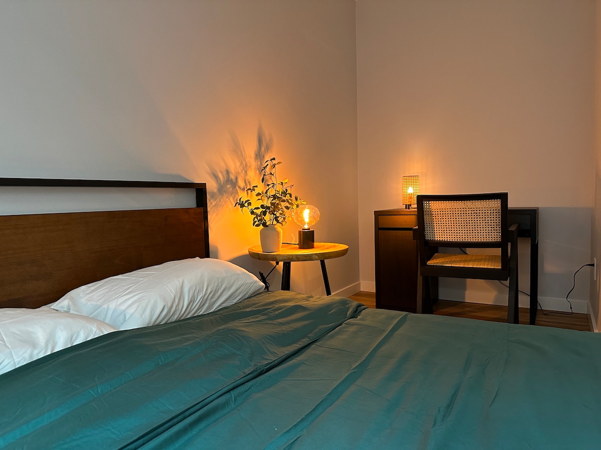 Un appartement entier au troisième étage d'une maison historique de style Colonial Revival dans le quartier Friendship. Deux chambres, chacune avec un lit queen en mousse à mémoire de forme ferme, une salle de bain avec baignoire/douche sur pieds, un immense salon avec coin salon et bureau, et une cuisine entièrement équipée avec lave-linge et sèche-linge. Montez jusqu'au troisième étage. Un matelas gonflable Queen Size ou un lit pour bébé peut être ajouté à l'une des chambres ou au séjour, il suffit de nous le faire savoir.