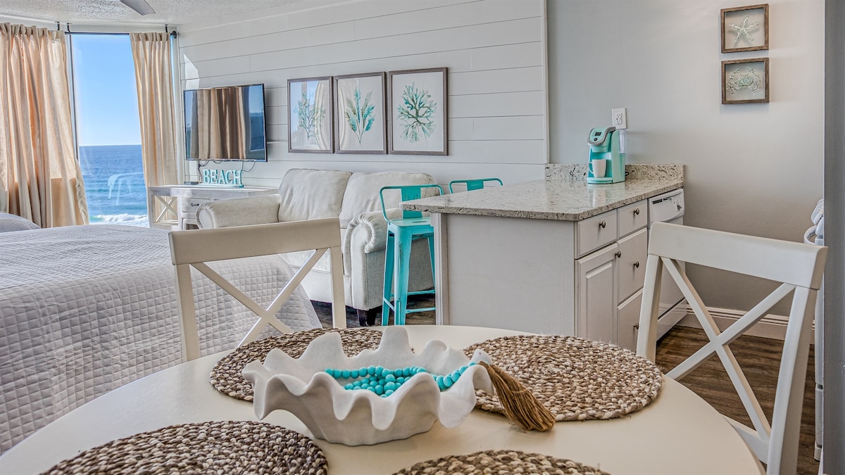 Premium penthouse Gulf-front studio on the 8th floor at Top of the Gulf Resort in Panama City Beach—unobstructed emerald Gulf views, direct beach access (no roads to cross). Enjoy early 3PM check-in and FREE daily beach chairs + umbrella (Mar–Oct, ~$50/day value). Sleeps 4 with two queen Casper hybrid beds, full kitchen, smart TV. Quiet family-friendly resort with Gulf-front pool, kids pool, fitness center, game room, BBQ area. Affordable luxury escape with personalized owner support—book today!