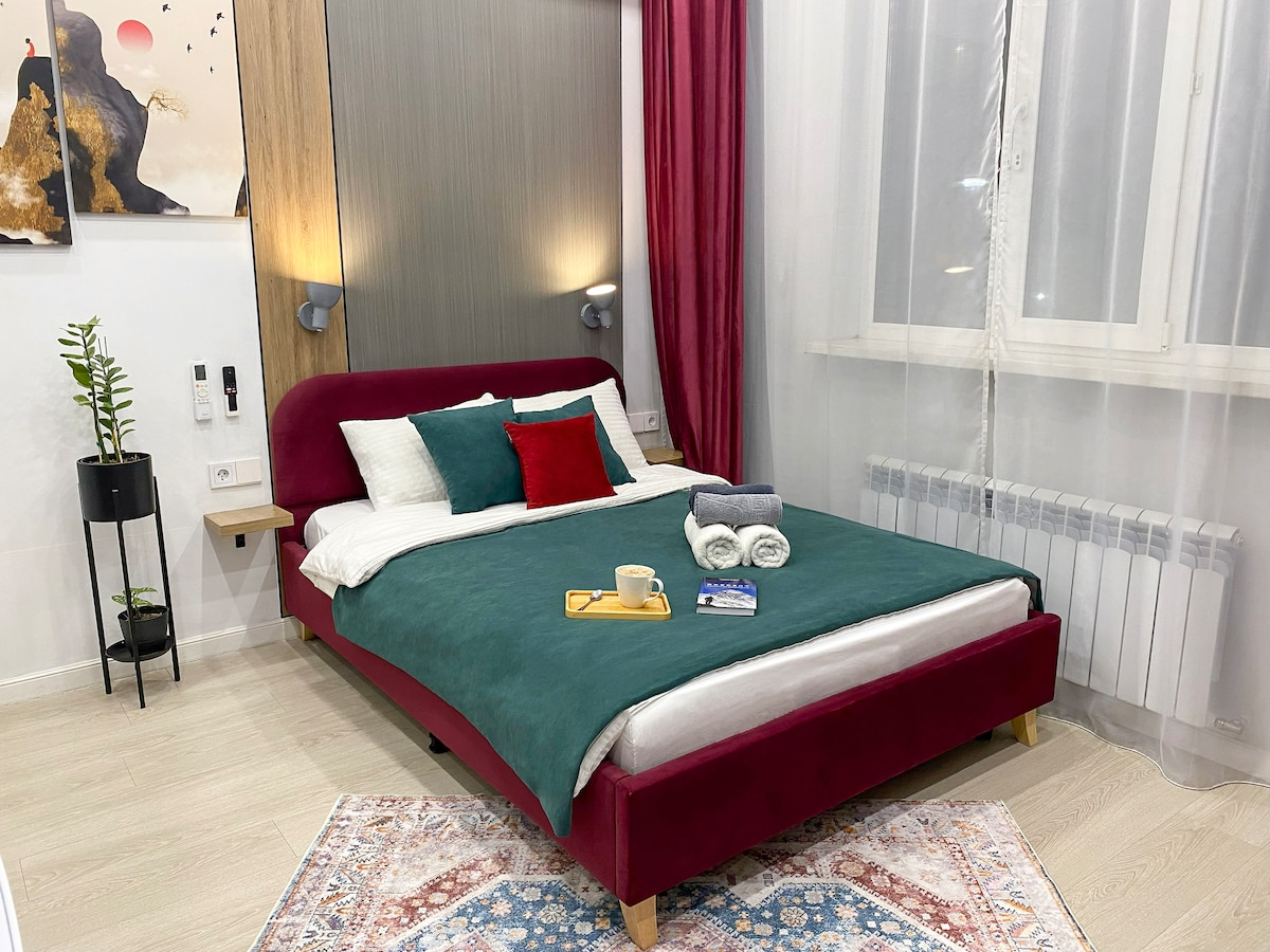 Un studio élégant et confortable en plein centre-ville 🧡 Intérieur moderne, ambiance chaleureuse et espace réfléchi pour un repos et un travail confortables. Un lit double confortable avec du linge de haute qualité, une cuisine complète et une connexion Wi-Fi rapide. Parfait pour les couples et les voyages d'affaires. Les cafés, les commerces, les zones piétonnes et les transports sont accessibles à pied. Propre, lumineux et vraiment confortable. Réservez et sentez-vous comme chez vous 🍊🧡