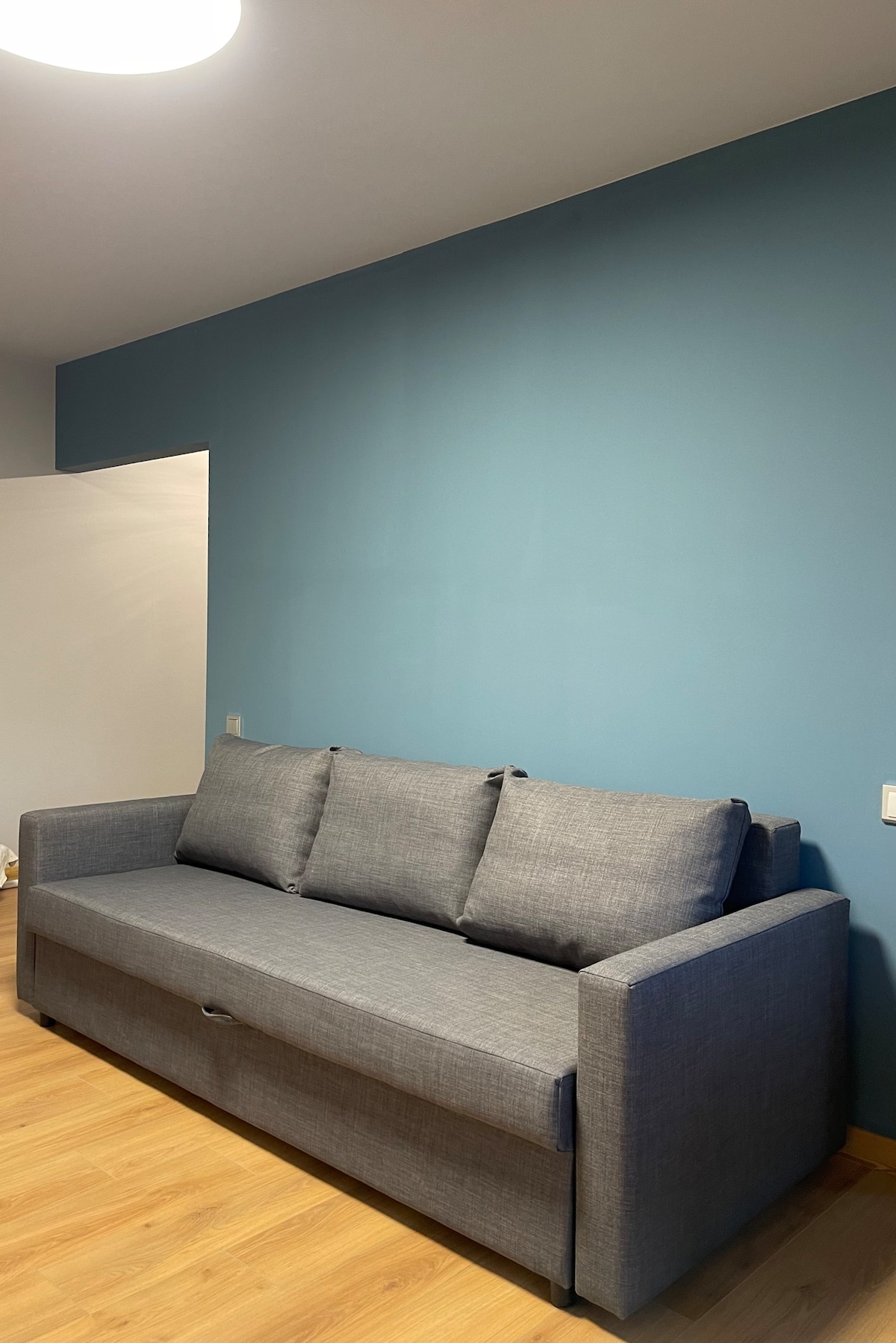 C'est un endroit unique où séjourner, avec leur propre style. L'appartement est seulement rénové, tout dans l'appartement est tout neuf. Tout est arrangé pour votre commodité : pantoufles jetables, un distributeur avec shampoing, gel douche, savon, serviettes blanches neige, linge frais, pantoufles, produits d'hygiène, poudre à laver, gel lavage, conditionneur de linge. Il y a aussi un puissant sèche-cheveux 2200. Vous n'avez donc pas à tout emporter. Table à repasser confortable et fer à repasser de très haute qualité.