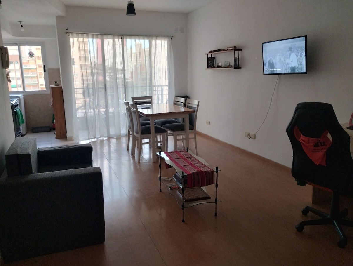 Excelente alquiler temporal en Lomas de Zamora! Excelente departamento nuevo en el centro de “ Las Lomitas” ,. Zona muy tranquila. A metros de la estación de tren, a metros de zona comercial, gastronómica y de ocio Inmejorable acceso. Sobre avenida principal, muy concurrida, luminosa y segura. El alojamiento totalmente equipado con balcón, aire acondicionado, dormitorio matrimonial, TV con cable, cocina completa con heladera, lavarropas, vajilla y wifi gratis.