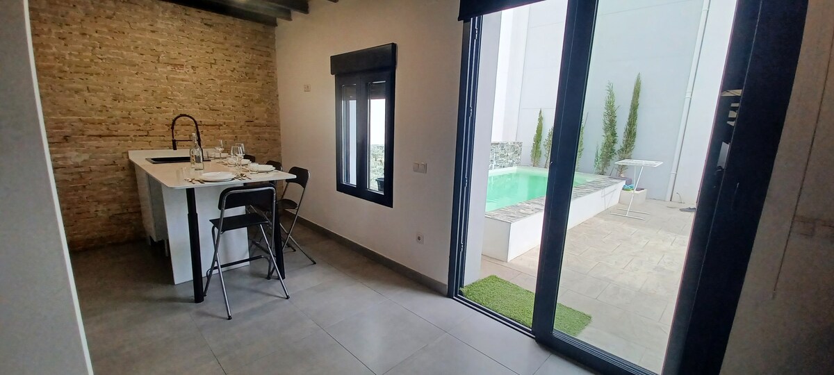 Petit loft avec patio privé dans une ancienne maison de 1936, entre la Cité des Sciences (10 min à pied) Ruzafa (5 min à pied) et Roig Arena 5 min, très calme et sûr (à côté de la caserne de police) et une promenade du centre historique 20 min, plage 10 min en bus. Il y a un lit double 1,40/2,00 m, une mezzanine avec un autre lit double 1,40/2,00 m/draps et couette en hiver. Chauffage/climatisation. Télévision Service WIFI 600 Mo gratuit. Les familles avec enfants adoreront dormir dans la mezzanine.