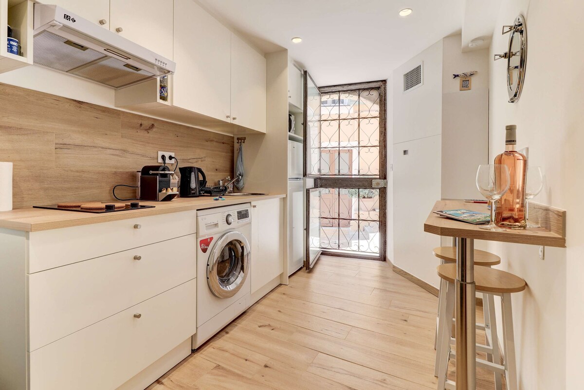 Appartement ensoleillé d’une chambre avec balcon donnant sur la rue piétonne principale de la vieille ville d’Antibes. Parfait pour les voyageurs qui souhaitent séjourner en plein cœur de la vieille ville animée, avec des cafés, des restaurants et des boutiques juste en dessous et à quelques minutes du célèbre marché provençal. Il est décoré avec goût dans des couleurs calmes et neutres, a de beaux plafonds à poutres apparentes et est climatisé C’est un bel appartement lumineux et aéré, idéalement situé pour passer des vacances très agréables. Arrivée autonome à l’aide de la serrure à code.