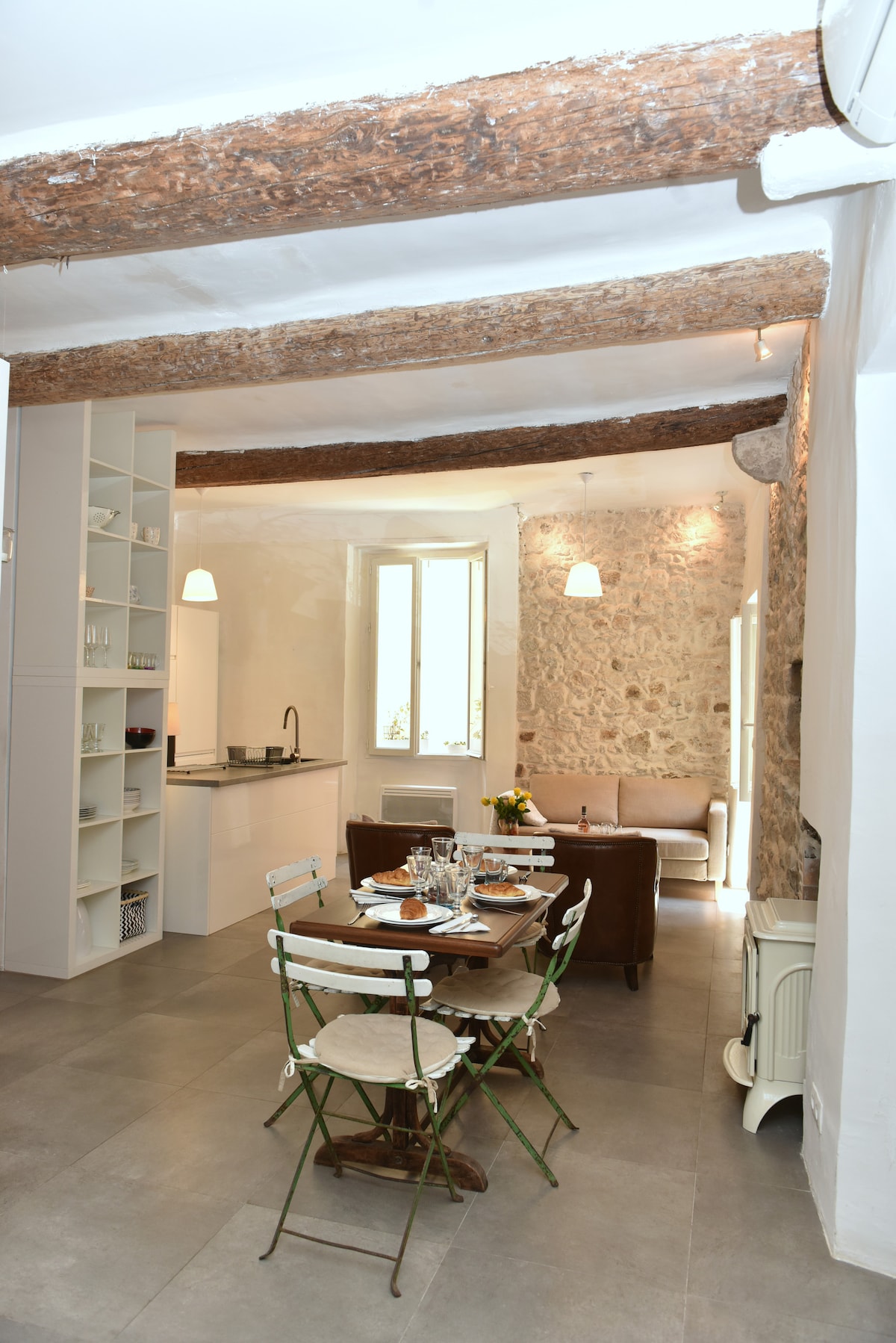 Appartement confortable et confortable pour 2 personnes en plein centre de la vieille ville d'Antibes. L'appartement est juste en face de la cathédrale et à quelques pas du musée Picasso et du marché provençal. La pièce principale dispose d'une cuisine entièrement équipée, d'un salon, d'un coin repas et d'une niche avec un bureau et des étagères si vous avez besoin de travailler. Un escalier en colimaçon vous mène à une chambre calme avec un lit queen. La salle de bain dispose d'une baignoire, d'un lavabo et des toilettes. La literie et les serviettes sont également Forte WIFI et climatisation.