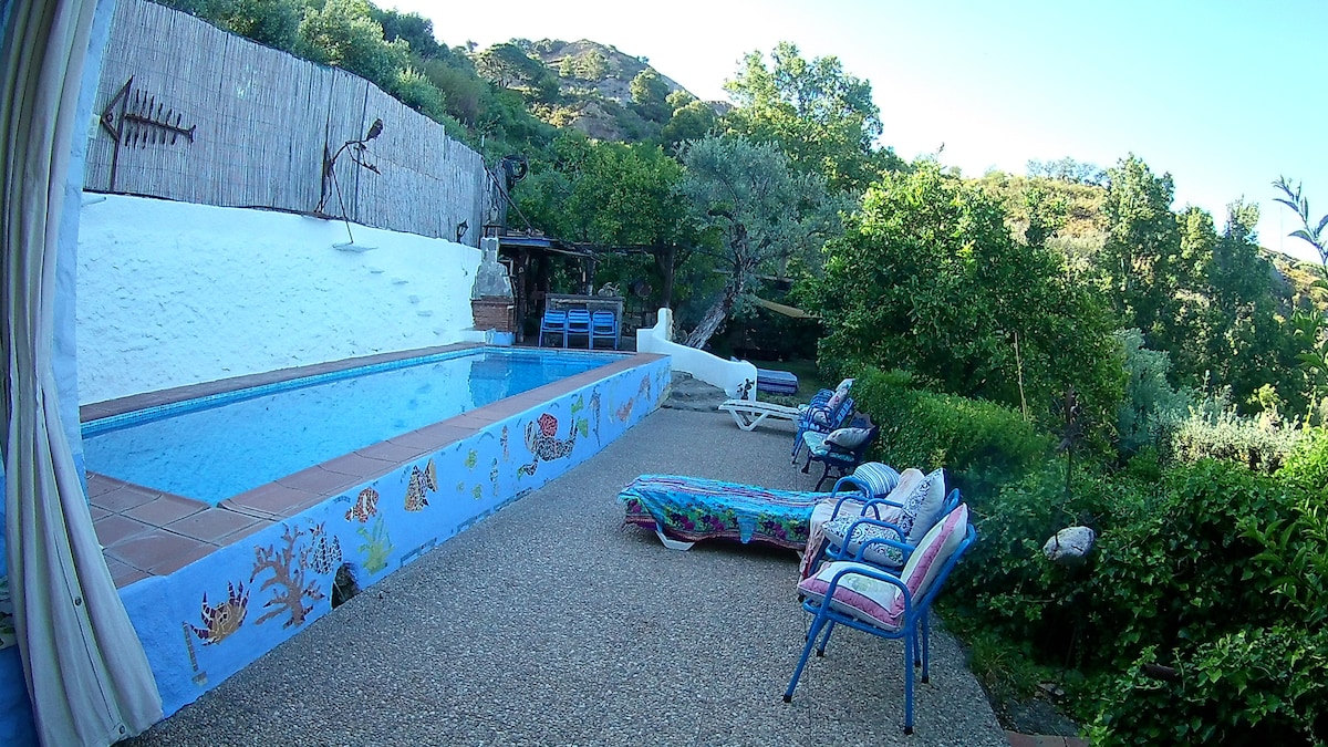 La Casa Azul est une retraite pour les sens, une ferme de 2 chambres entourée d'oliviers centenaires et d'orangers dans une ferme biologique de 20 000 mètres carrés, à seulement 3 km et moins de 10 minutes en voiture des supermarchés, restaurants, magasins bio et bars d'Órgiva. Idéale pour des vacances en famille, pour partir à l'aventure en randonnée ou à vélo dans les Alpujarras. La maison est entièrement équipée et préparée pour accueillir ceux qui recherchent des séjours plus longs, vous vous sentirez comme chez vous ! Idéale pour les télétravailleurs et les familles pratiquant l'enseignement à domicile.
