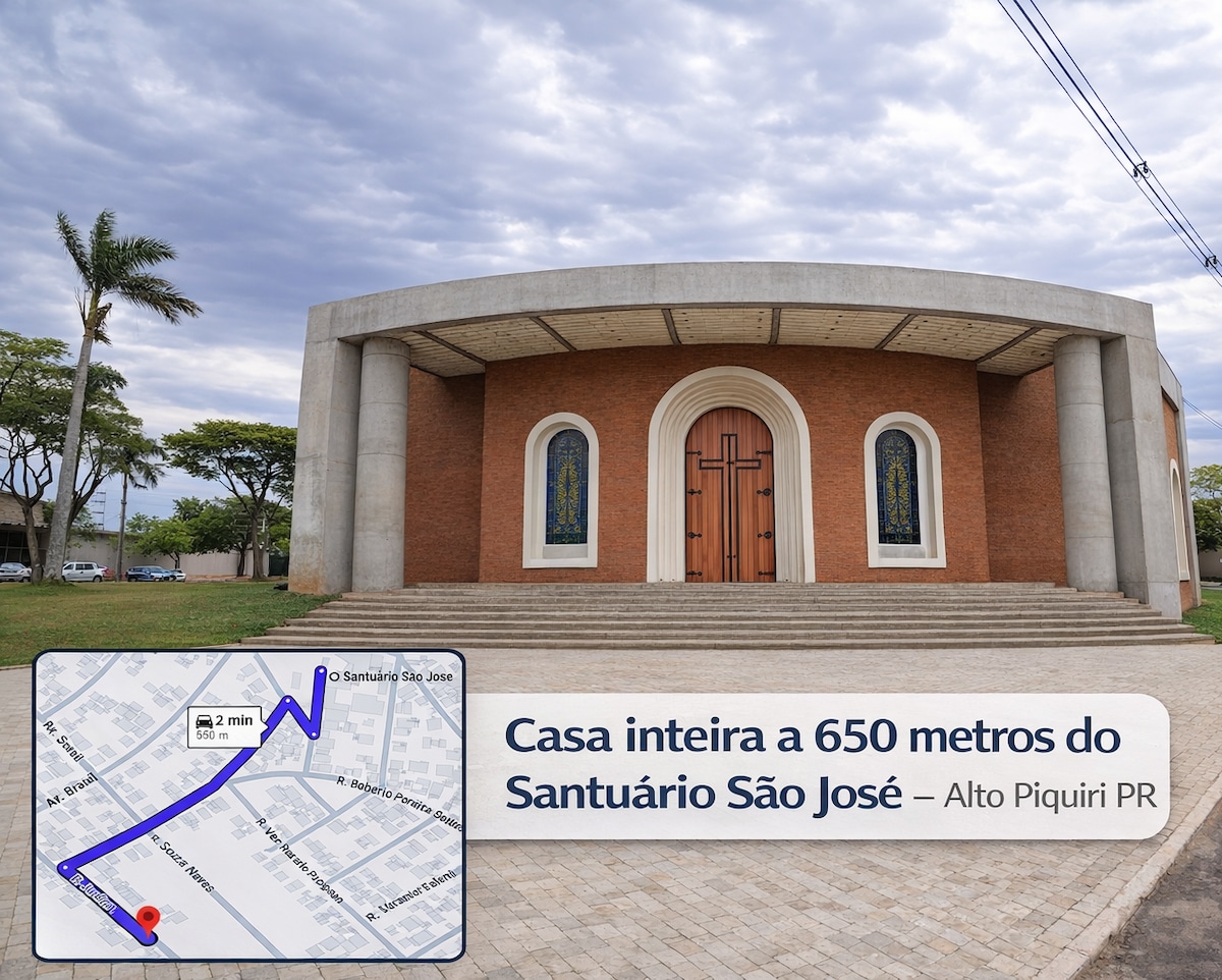 Hospede-se em Alto Piquiri, a poucos passos do Santuário São José — localização perfeita para quem vem viver momentos de fé. Nossa casa é ampla, extremamente limpa e preparada para receber você e sua família com conforto e tranquilidade ✔️ Limpeza impecável ✔️ Casa ampla, arejada e confortável ✔️ Bairro tranquilo e seguro ✔️ Ambiente familiar e acolhedor ✔️ Localização estratégica, muito próxima ao Santuário Garanta sua reserva para o dia 19 — datas disputadas!