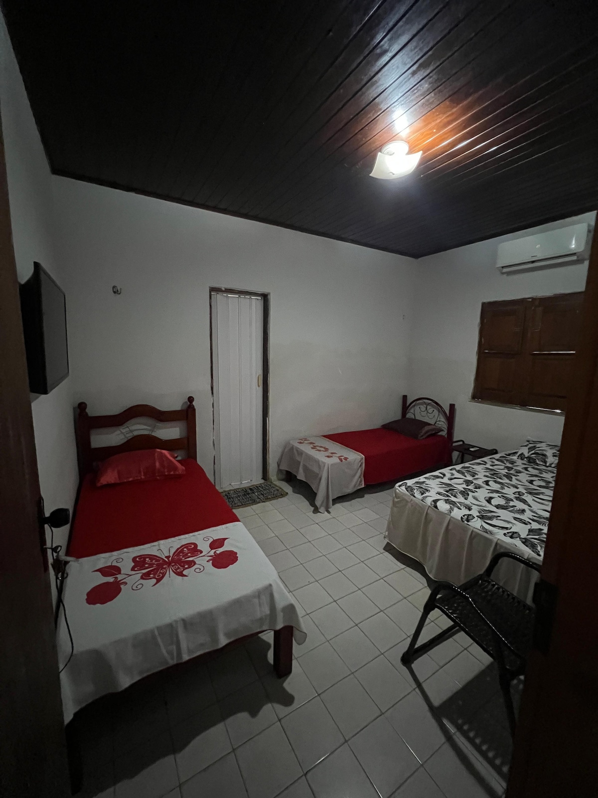 La suite APT 03 de la Pousada da Fatinha est parfaite pour les familles ou les petits groupes. Peut accueillir jusqu'à 4 personnes, avec 1 lit double et 2 lits simples. Elle dispose de la climatisation, d'une connexion Wi-Fi et d'une table d'appoint. La salle de bain est privée, assurant confort et intimité. Profitez également des espaces communs avec tables et garage, ainsi que du restaurant avec la meilleure cuisine maison d'Altos (non inclus). Un petit endroit confortable qui vous fait vous sentir comme chez vous.
