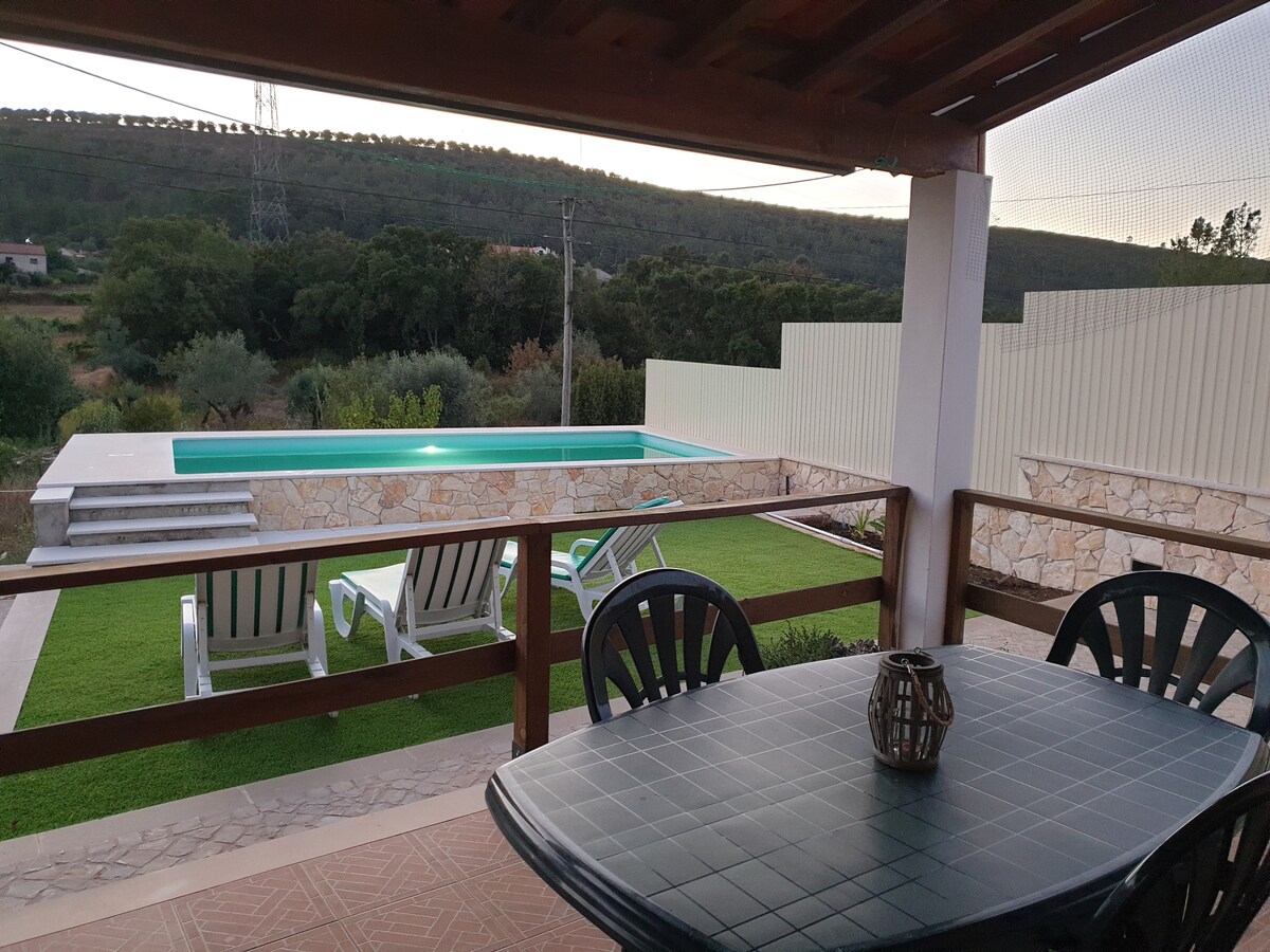 La partie inférieure de la maison avec capacité d'accueil jusqu'à 6 personnes, cuisine entièrement équipée (wifi, linge de maison, ustensiles de cuisine, micro-ondes, cuisinière, etc.),salle de bain et salon(télévision) et une piscine exclusive non partagée est disponible. Attention : Il n'y a qu'une chambre qui est divisée par une taille de Fol, où se trouvent les 3 lits, deux doubles et un individu, je précise à l'avance que l'intimité des chambres n'est pas grande. Lieux touristiques : - Araia Fluvial Agroal - 10 min - Fátima - Zezere