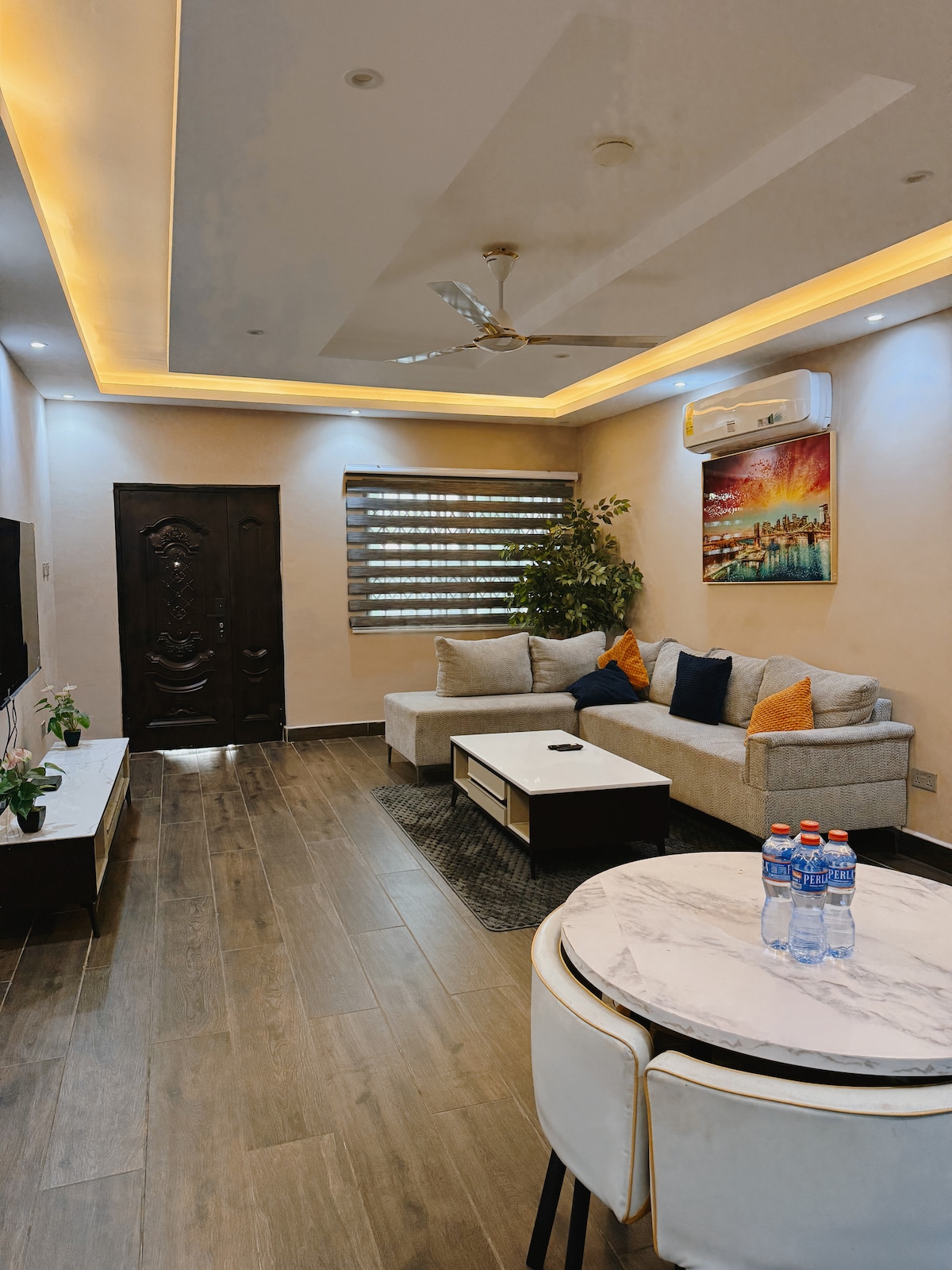 Cet appartement d'une chambre méticuleusement conçu à East Airport, Accra, offre un confort exceptionnel à seulement 10 minutes de l'aéroport international de Kotoka. Les caractéristiques comprennent une cuisine entièrement équipée, une télévision intelligente, une connexion Wi-Fi illimitée, une piscine et une terrasse sur le toit avec une vue imprenable sur la ville et la piste. Avec une alimentation électrique 24h/24 et à proximité d'Accra Mall, Marina Mall et des meilleurs restaurants, il allie luxe et commodité à un prix abordable, promettant un séjour inoubliable.
