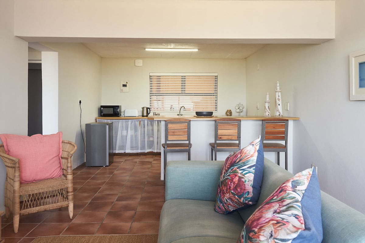 Le logement se compose d'un coin salon et d'une chambre avec salle de bains privative avec une entrée séparée de celle de la maison principale. Une petite kitchenette avec un réfrigérateur, une bouilloire, un micro-ondes est inclus. (il n'y a pas de cuisine) 2 personnes maximum. La maison est située dans la banlieue calme de Sunrise-on-Sea, à deux pas de la mer. Il est à environ 20 minutes en voiture de l'East London CBD et à 35 minutes en voiture de l'aéroport.