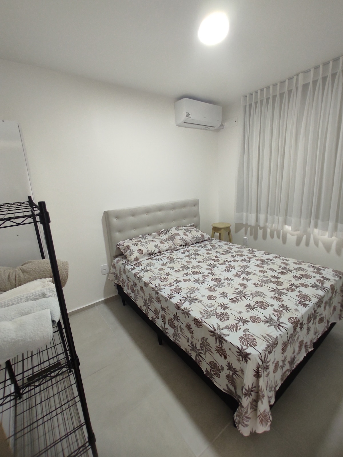 Appartement au rez-de-chaussée, wi-fi 400 mégas (fibre optique) ; situé dans le quartier Tarumã-Açu. Check-in flexible sous réserve de disponibilité. Disponible 1 chambre avec air. cond., salon avec canapé-lit confortable et ventilateur turbo portable, smartv 32" avec globoplay ; cuisine américaine, 1 salle de bain et balcon. Linge de lit et de bain. Piscine et excellent espace pour coopérer, copropriété calme, avec sécurité 24h/24. Équipé pour des séjours courts et longs. Chambres équipées pour jusqu'à 3 personnes. Les bébés et les animaux de compagnie sont les bienvenus.