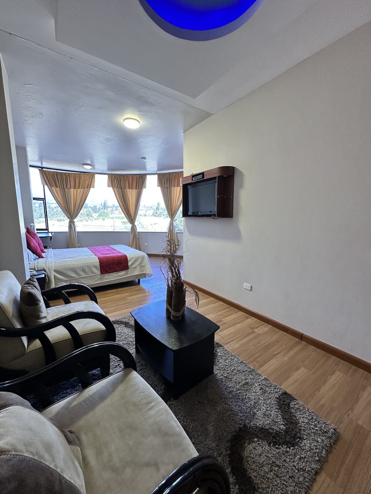 Nous sommes situés dans le centre-ville d'Ambato, à seulement 5 minutes du terminal terrestre (gare du Nord) .Tendras accès facile au centre-ville, en plus de pouvoir visiter des espaces publics très proches tels que : Le parc de la lagune, le stade Bellavista, le centre commercial Multiplaza, l'Université technique d'Ambato et plusieurs endroits très populaires de notre ville. Nous vous invitons à voyager à travers le temps et à connaître une partie de l'histoire de notre ville exprimée dans nos installations