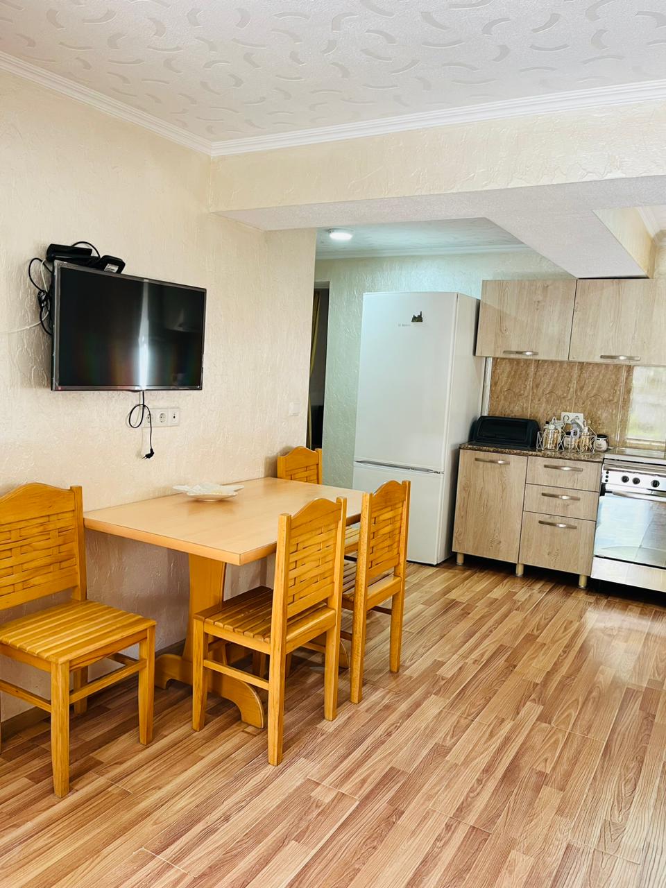 La maison est dans un endroit calme et paisible, parfait pour se détendre loin de l'agitation de la ville. Convient aux couples et aux familles avec enfants. Une excellente option pour les télétravailleurs d'échapper à la chaleur de l'été. Les fenêtres et la cour offrent une vue magnifique sur les montagnes. Pour la détente des voyageurs, il y a un balcon avec vue sur la forêt au deuxième étage. Et une grande cour surplombant les montagnes. La nuit, vous pouvez regarder les étoiles dans le ciel. Il y a une cascade et un sentier forestier pour des promenades à proximité. Nous accueillons les voyageurs avec des animaux de compagnie.