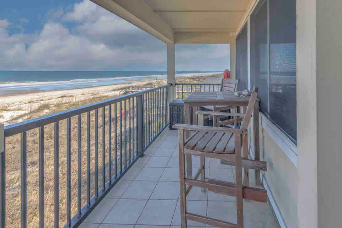 Bright & airy 2 bedroom corner unit. It is clean and beautiful & offers all the comforts of home. Living room opens up onto a 20 ft balcony which offers extended views of Fernandina Beach & is the best spot to watch the sunset over the ocean & dolphins playing in the waves. Master bedroom is ocean side & has a king bed. The kitchen is fully furnished allowing for meals at home. Beach towels, chairs and umbrellas included. Perfect for a romantic getaway, girls weekend or family vacation!