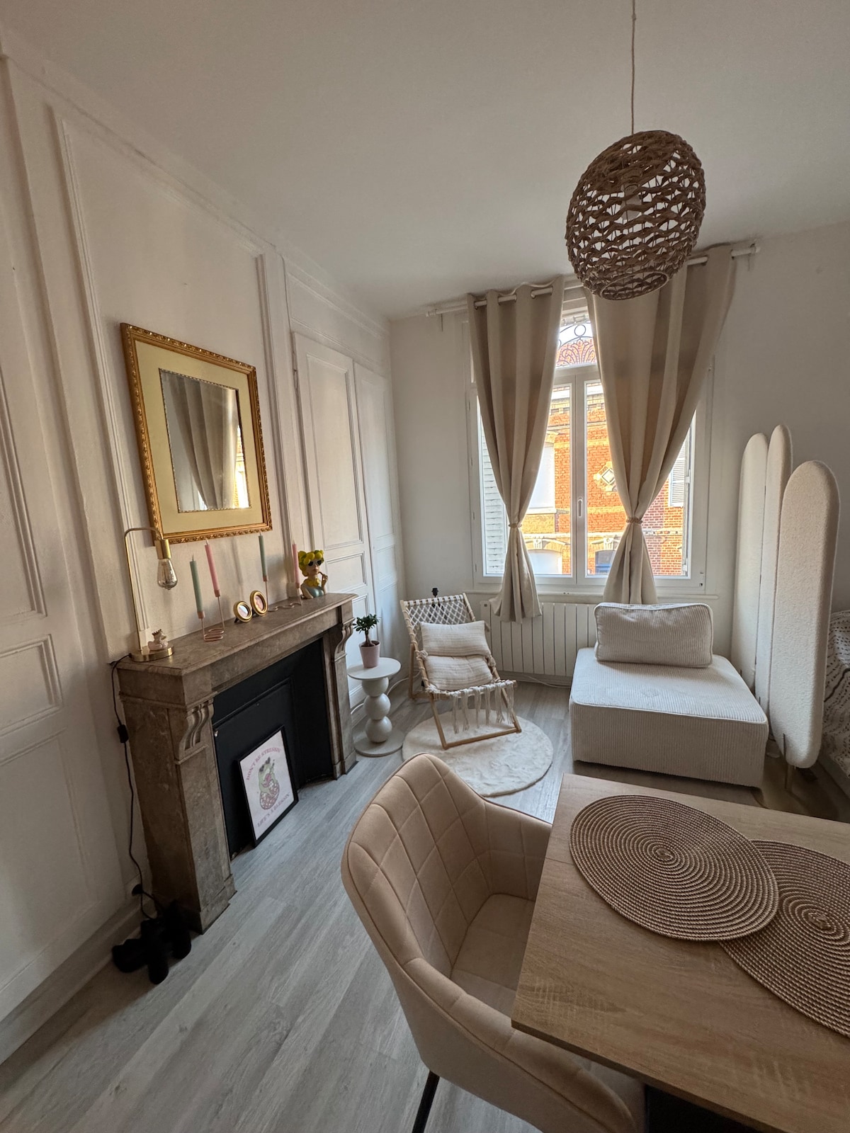 Idéalement situé en centre ville dans le quartier des halles du Beffroi, à quelques minutes a pieds de la Cathédrale et des restaurants de Saint leu . Logement refait a neuf et disposant de tous les équipements nécessaires pour y passer un agréable séjour. Salon avec son écran plat, cuisine ouverte avec îlot toutes équipes : plaque de cuisons, hotte , four , lave vaisselle , micro-onde et lave linge . Chambre avec écran plat et dressing. Salle de bain avec baignoire et vasque en marbres .