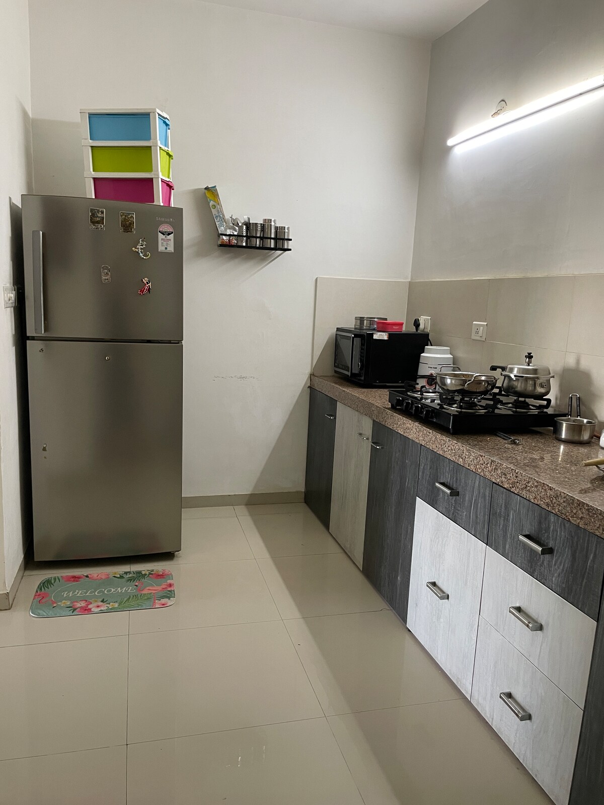 Un appartement moderne, serein et impeccablement entretenu de 2 chambres et un salon dans la société sécurisée et paisible de Shantigram. Conçu avec une esthétique propre, légère et aérée, cet appartement entier offre un confort et une commodité supérieurs pour les familles ou les groupes (jusqu'à 4 personnes). Votre séjour Pristine comprend : * Deux chambres Queen * Profitez de températures parfaites avec 3 climatiseurs dans le séjour et les chambres * Cuisine entièrement équipée * Équipements modernes : lave-linge et chauffe-eau instantanés dans les deux salles de bain pour l'eau chaude * WiFi.