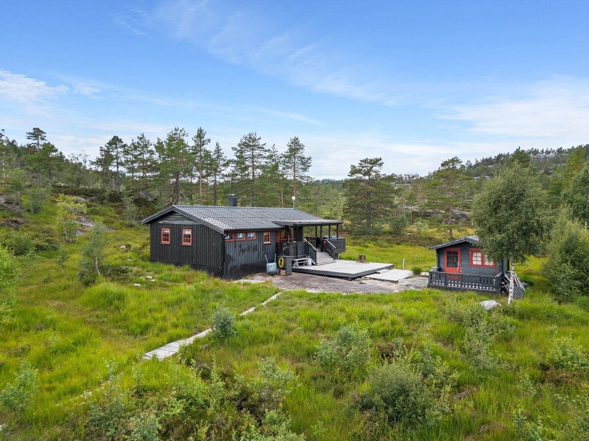 Escape to the mountains, kick back and relax in this calm, stylish space. Whether you're here to hit the cross-country ski trails just steps away in winter, or to explore the scenic hiking paths in summer, our location is unbeatable. Autumn brings its own magic, inviting you to discover an abundance of wild mushrooms and berries. Perfectly positioned in the nearest high-mountain area to Arendal and Grimstad, this cabin offers direct access to embrace nature's beauty, all year long.
