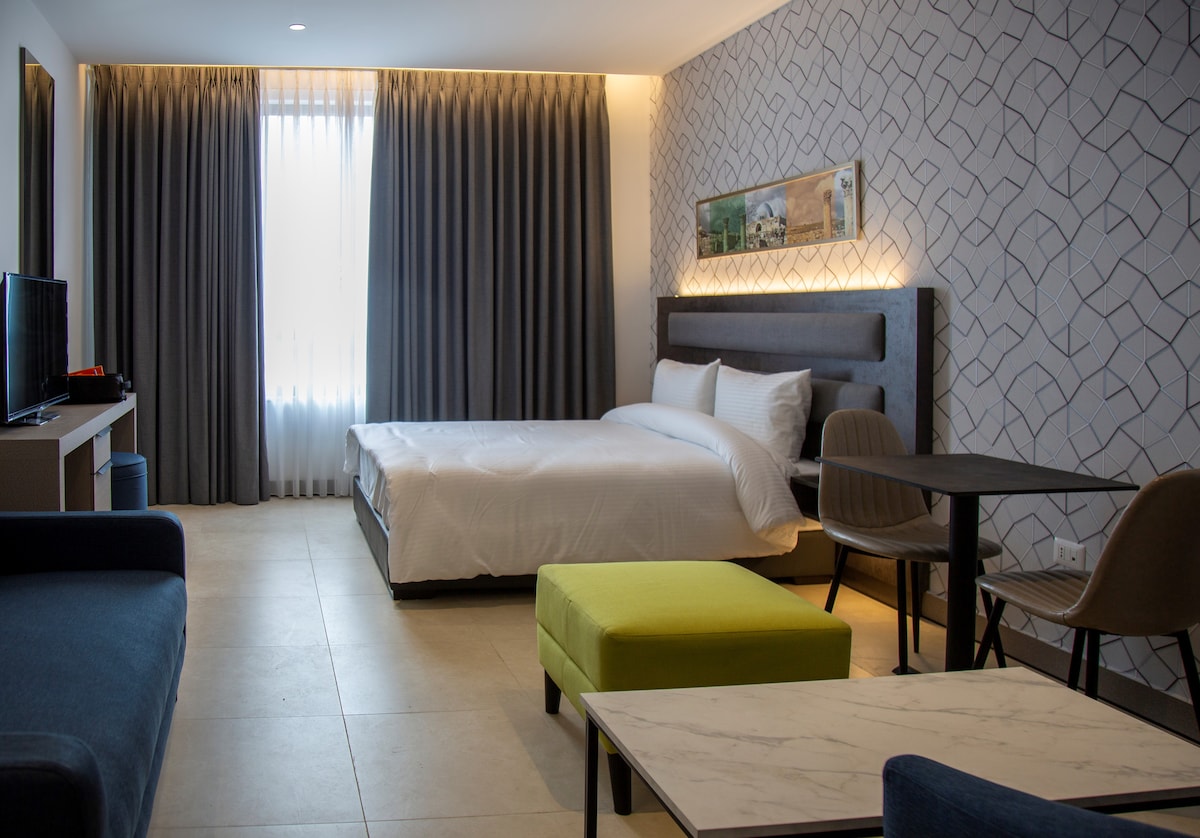 Experience comfort, style, and location at Liv Weibdeh — a boutique stay in the heart of Al-Weibdeh, one of Amman’s most charming and artistic neighborhoods. Our thoughtfully designed spaces combine modern comfort with a warm, welcoming atmosphere, making it perfect for business travelers, couples, families, and long stays.