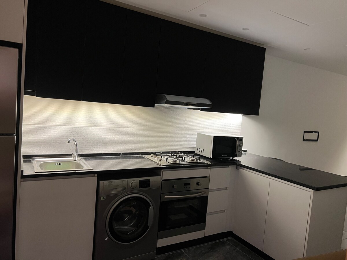 Joli studio moderne entièrement meublé avec belle vue sur la véranda à côté du supermarché, du restaurant, de l'hôpital, du nettoyage à sec, de la ville sportive, de la pharmacie et de nombreux services.