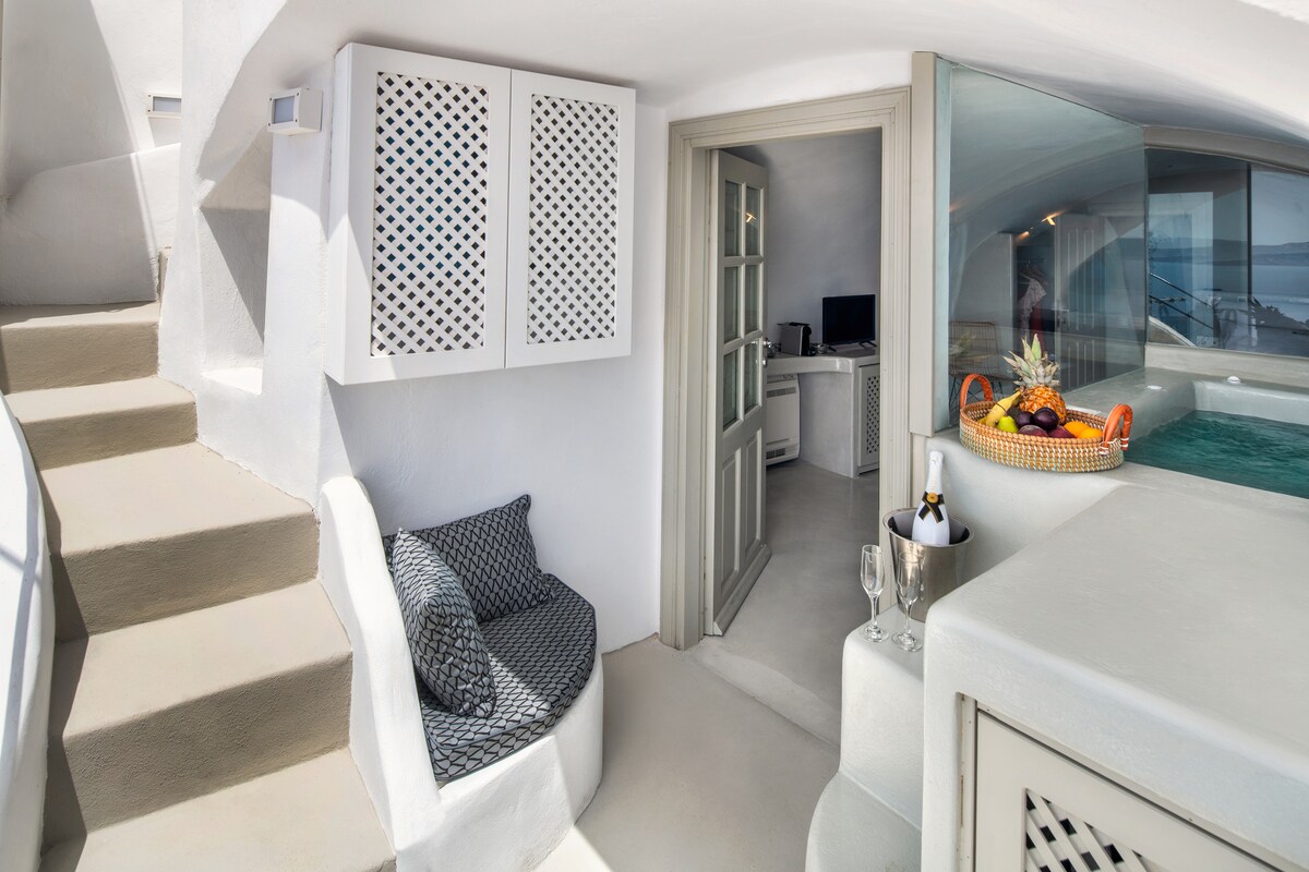 Suite de luxe avec jacuzzi extérieur, vue sur la caldeira