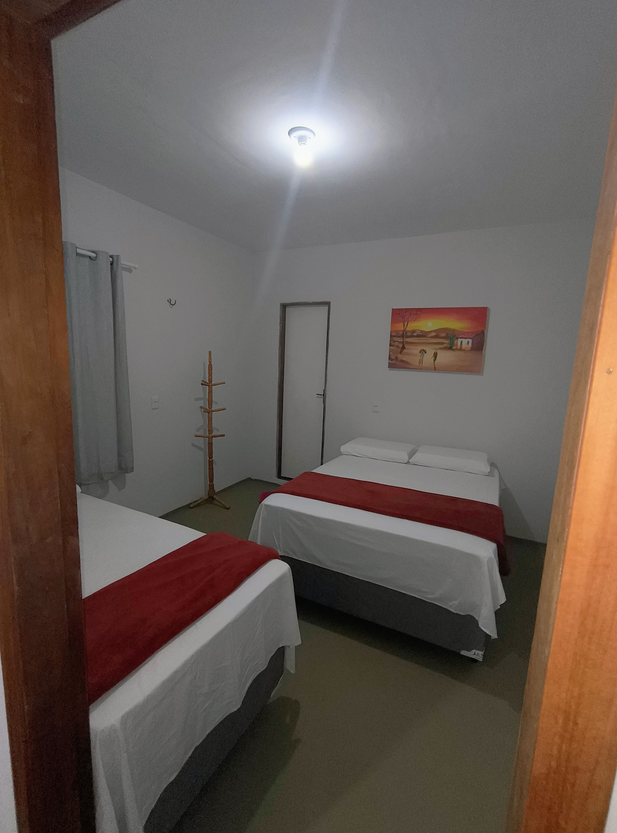 O quarto possui cama queen, ar condicionado, wi-fi, frigobar e banheiro privativo. As roupas de cama e banho serão disponibilizadas e trocadas conforme necessidade.