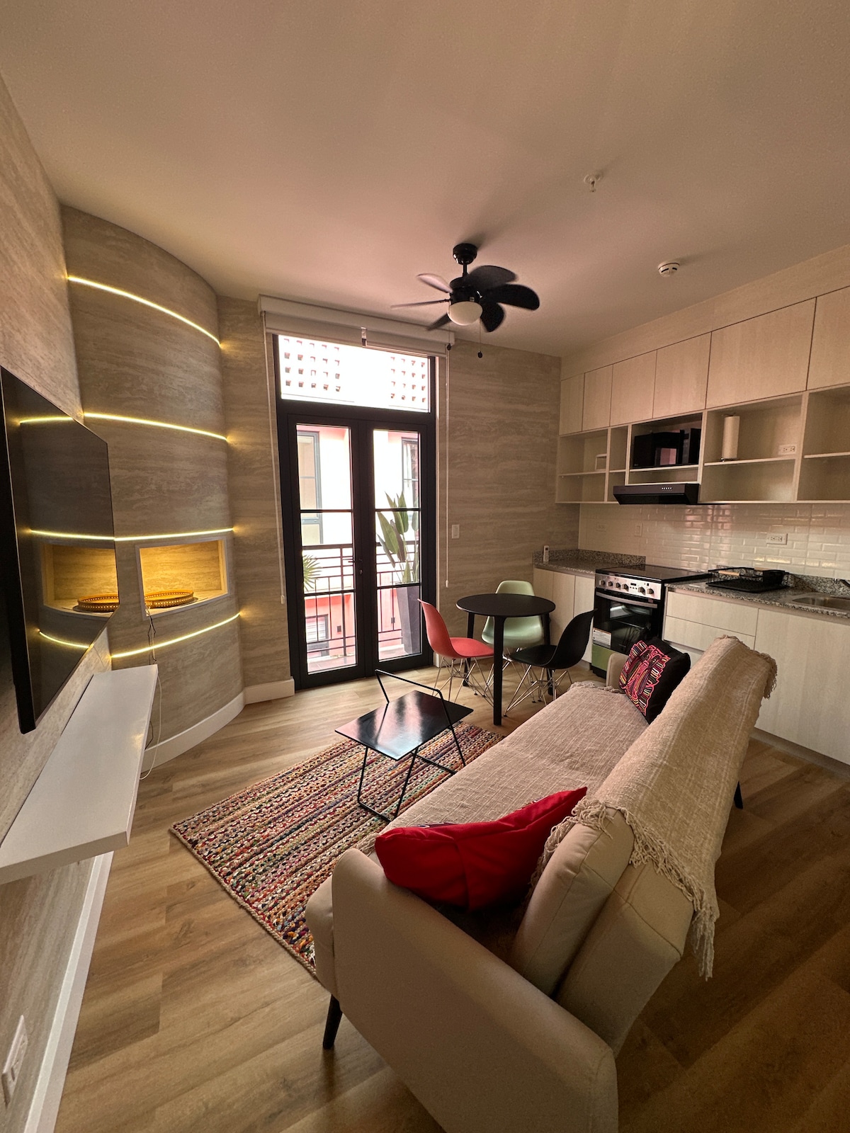 La vieille ville de Panama est l'un des quartiers les plus charmants et les plus animés de la ville. Déclaré site du patrimoine mondial par l'UNESCO. L'appartement L'espace combine des lignes modernes avec des détails originaux du quartier. Il dispose d'une distribution lumineuse, d'une cuisine équipée, d'un salon spacieux et de finitions conçues pour offrir du confort. Il dispose d'une chambre avec un lit king size et d'un beau balcon. Il est idéal pour ceux qui cherchent à vivre une expérience authentique dans la vieille ville.