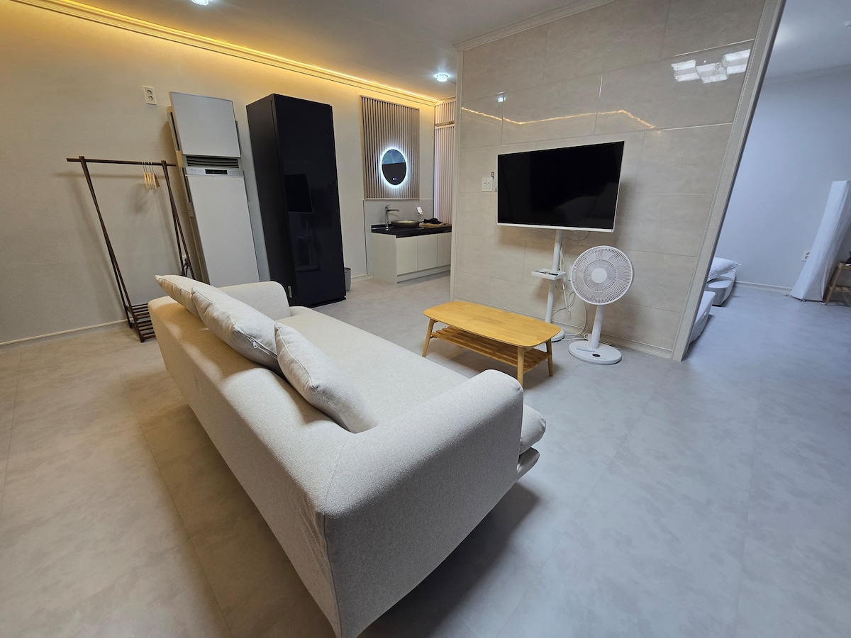 Andong Emotional Accommodation avec le service et la sensibilité d'un hôtel 5 étoiles Notre hébergement, qui est optimisé pour un trajet de 5 minutes en voiture des attractions et restaurants représentatifs d'Andong, tels que le pont Wolyeong, le pont Limcheong et la ruelle Galbi, offre un véritable repos pour votre voyage au-delà d'un simple « lit ». Deux chambres confortables (trois lits), un salon et une cuisine, une salle de bain propre et une terrasse pleine de sensibilité. Il s'agit d'un espace pouvant accueillir confortablement jusqu'à 5 personnes. La raison pour laquelle notre hébergement est spécial est que nous nous soucions « même des endroits invisibles ». Je pense que la propreté est plus importante qu'un intérieur tape-à-l'œil. Nous nettoyons soigneusement chaque recoin, et la literie et les serviettes sont remplacées par des neuves à chaque fois. Des serviettes de classe hôtelière de 200 g à un matelas de 35T pour une nuit de sommeil profonde, ils ont parfaitement pris soin de tout. Un autre point ! Si vous voulez pique-niquer au bord de la rivière Nakhon, nous vous prêterons gratuitement un ensemble de pique-nique émotionnel (tapis, table, lanterne, verre à vin et raquette géante). Si vous ajoutez une fontaine musicale au coucher du soleil, la journée se terminera comme dans un film.