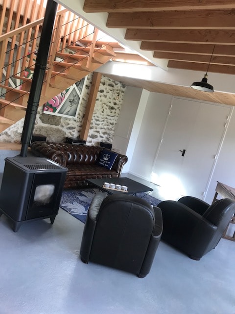 Découvrez ce logement atypique et douillet, une ancienne grange restaurée avec soin. Profitez d'une décoration unique, incluant des meubles chinés et de la barbotine, créant une ambiance chaleureuse et accueillante. Ce refuge paisible offre un espace spacieux avec une belle hauteur sous plafond, un confort exceptionnel et une baignoire à pattes de lion élégante. Vivez une expérience romantique unique dans un cadre calme et charmant, parfait pour se reconnecter et se détendre