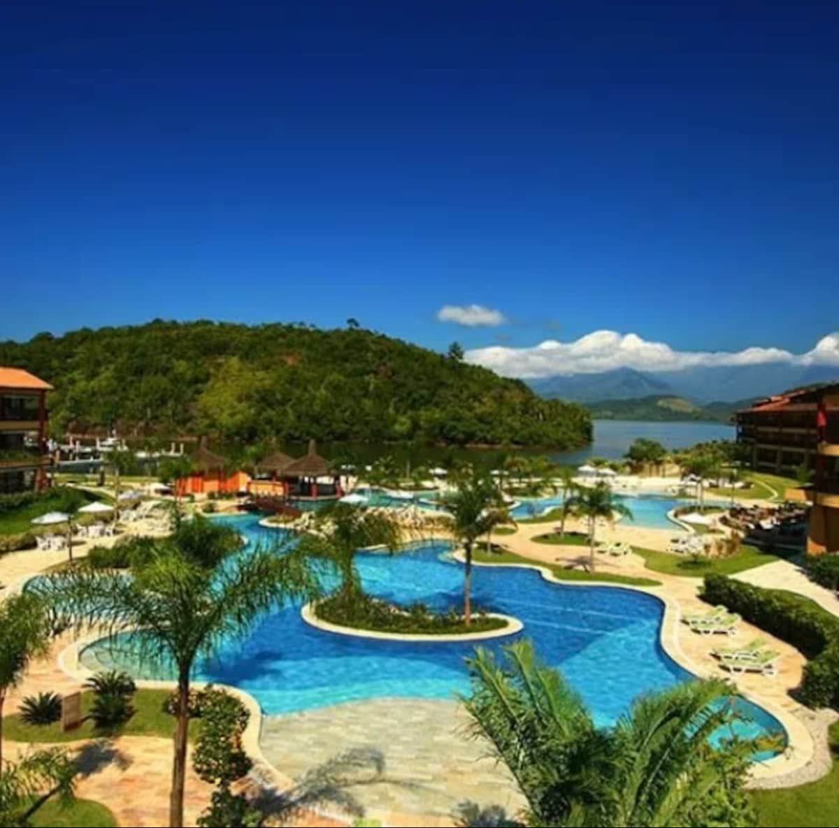 Apartamento duplex, com 02 suítes, e 01 cozinha com vista para a praia, e para a piscina, com decoração lindo, no Promenade Angra Resort & Marina, ou Melia antigo. Com capacidade para até 05 pessoas (adultos e crianças inclusas). Em caso de família grande, temos um outro apartamento idêntico, com isso (para 05 pessoas), no lado. Pode alugar os dois apartamentos para o mesmo período para 10 pessoas. Vista para a praia, montanhas e piscina. Relaxe com toda a família nesta acomodação tranquila.