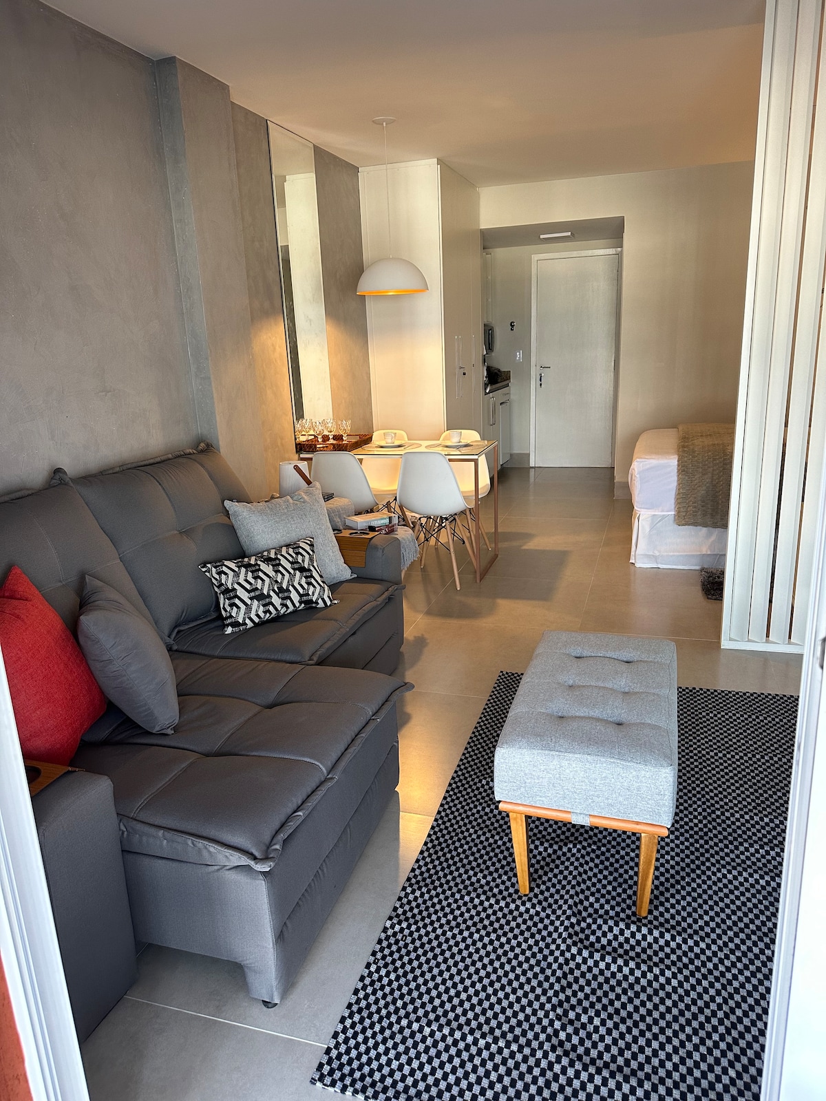 Studio entièrement meublé et en excellent état dans la copropriété Angra Inn, en bord de mer, situé sur l'une des principales plages d'Angra dos Reis, Praia Grande, avec des eaux propres, cristallines et calmes, à 5 km du centre-ville, à environ dix minutes en voiture. L'appartement est livré propre. Pendant le séjour, aucun nettoyage ne sera effectué par la copropriété. Les draps et les serviettes ne seront pas fournis, ils doivent être apportés par les locataires. ARRIVÉE: 15h / DÉPART: 12h.
