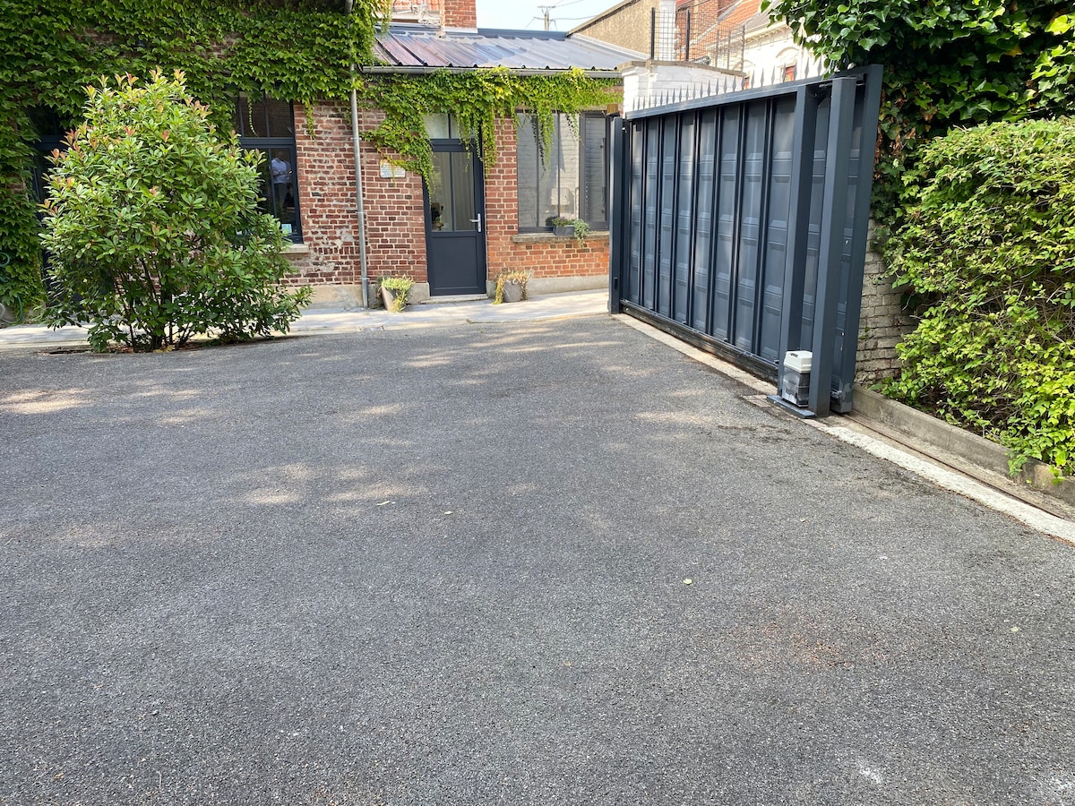 Studio privatif avec jardin situé à 5 minutes à pied du Louvre Lens, 2 minutes en voiture du stade Bollaert, 10 minutes de Vimy, 20 Minutes d'Arras et 30 de Lille. Logement avec cuisine équipée, salle de bain avec lave-linge, dressing, wifi très haut débit, smart TV avec Netflix. Wc séparés. Studio avec 1 lit (160*200) pouvant être séparé en 2 à la demande (2 lits de 80/200) + 1 canapé Le jardin privatif possède un salon de jardin. Le lit sera fait, serviettes de toilette à disposition.