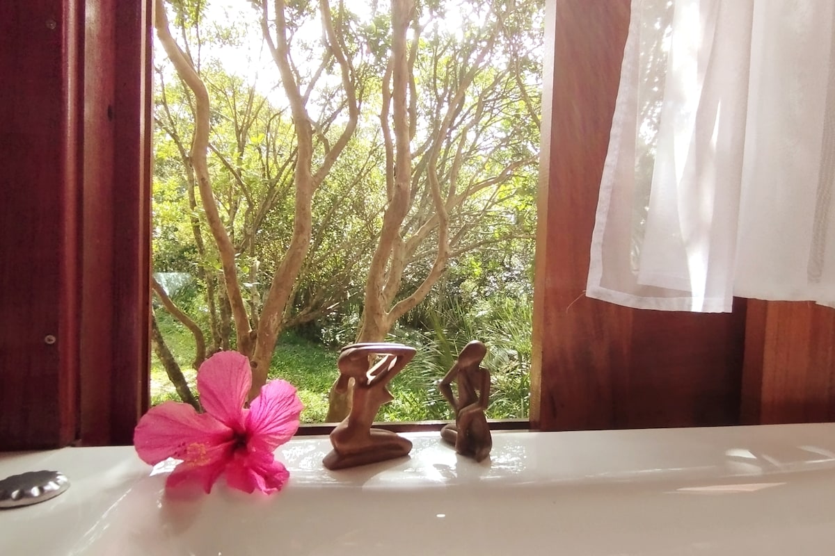 A Rustic Cottage in front of the Conceição Lagoon, surrounded by Native Forest, with a Crystal Water Stream to bathe, a heated Jacuzzi with spring water, sacred fire to warm the nights and an incredible garden to sunbathe or meditate. It is a chalet of great comfort and also privacy. Ideal for couples looking to celebrate love, friends looking to get together and enjoy nature, families who want peace and quiet, or writers and artists looking for inspiration.