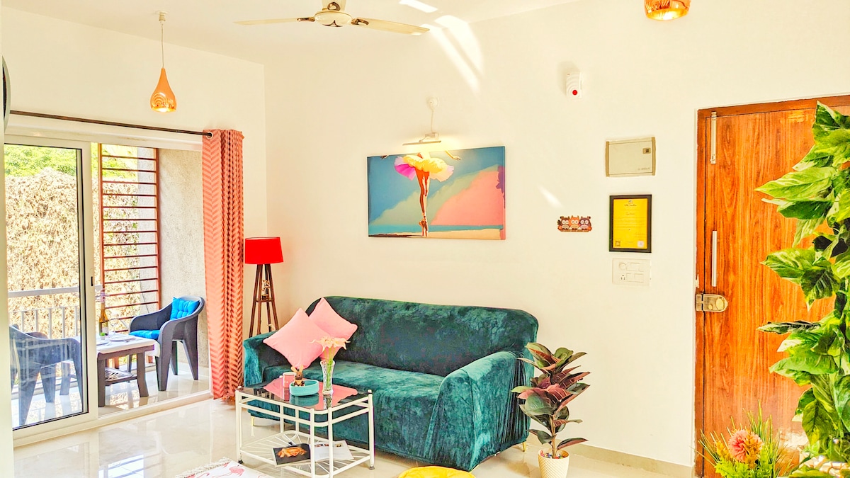 Découvrez Pamela Palms™ - abritant de grands palmiers verts et des vues rares sur les arbres, cet appartement lumineux et moderne de 67 m² avec 2 chambres au 3e étage est à 5 minutes en voiture de la plage d'Anjuna, et est plein de lumière naturelle et de sensations Goa ! Équipé d'une connexion Wi-Fi ultra-rapide (300 Mbit/s) et d'une alimentation de secours, vous serez étroitement connecté aux restaurants les plus cool, aux restaurants chics et aux supermarchés. Un séjour animé pour vos escapades à Goa et votre travail avec votre groupe !