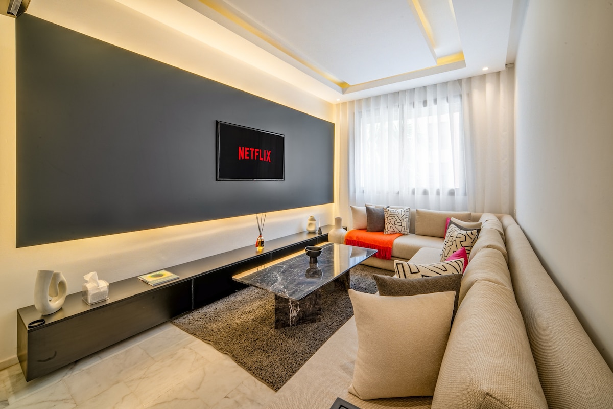 Appartement ensoleillé, chaleureux et hors pair, idéalement situé dans une résidence neuve en plein coeur du quartier mythique, Guéliz, avec une vue sur le Mall Carré Eden, très bien asservi et proche de toutes commodités. Moderne avec une touche marocaine, il est aménagé pour que vous vous sentiez chez vous, c'est le point de départ idéal pour profiter des merveilles de Marrakech ainsi que pour y séjourner pour un voyage d'affaire. Il est également parfaitement adéquat au télétravail.