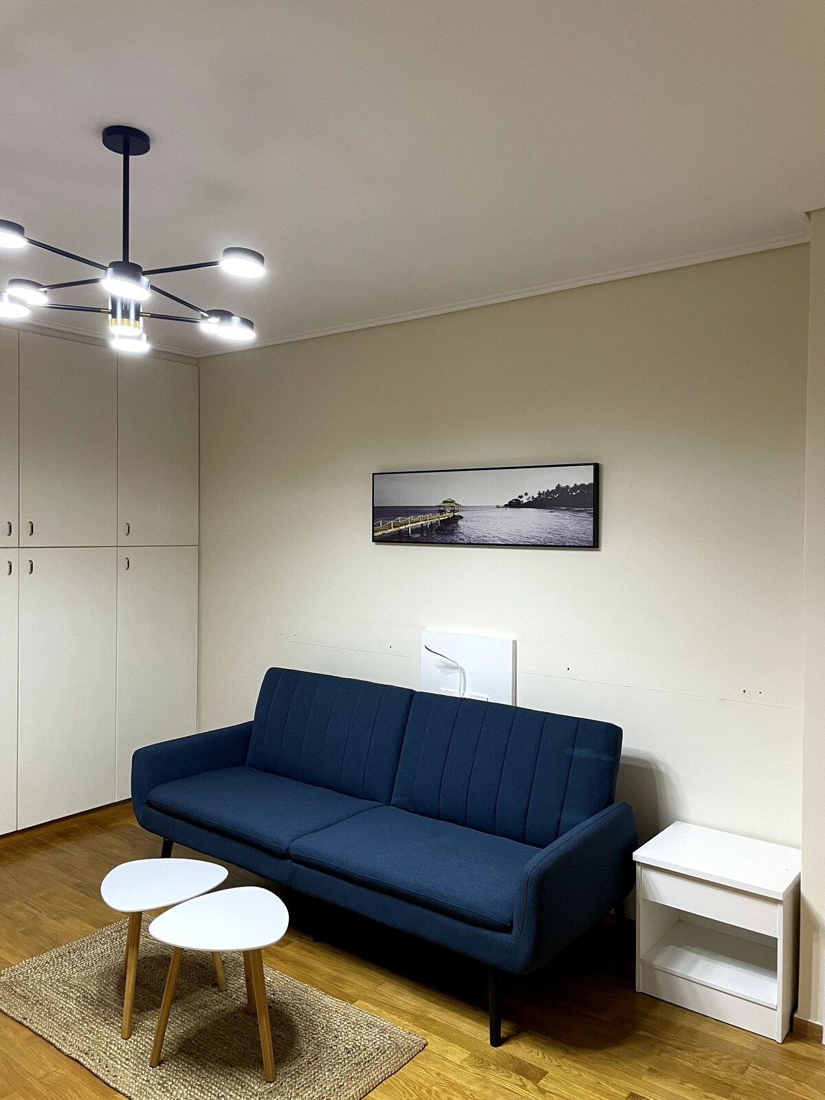 Stylish Open-Plan STUDIO Apartment | Garden, Balcony & Parking Enjoy a bright and spacious open-plan studio in one of Athens' top coastal suburbs. This is a single-room space with a double bed and a sofa that opens into a double bed, plus a living area, kitchen & dining—ideal for couples, solo travelers, or small families. Features: private garden, balcony, secure parking. Walk to cafes, shops, park & buses (2 mins). 10-min drive to beach, 22-min to airport.