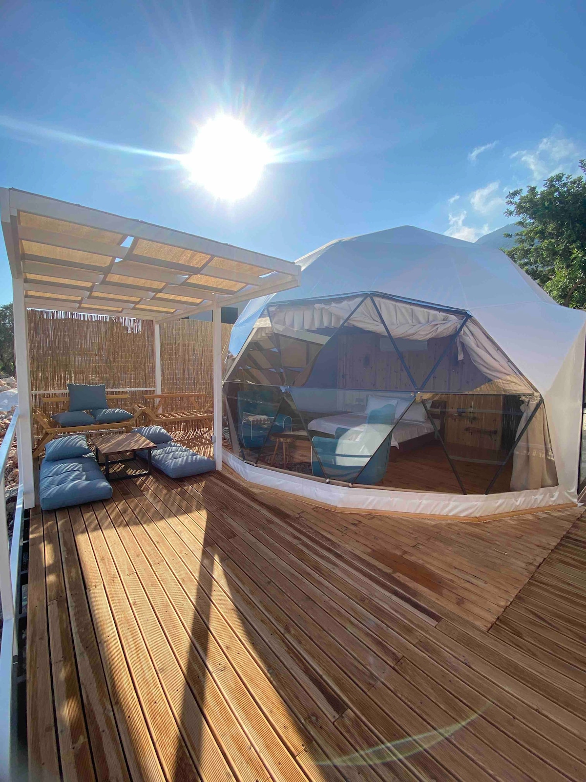 Nos maisons conçues au glamping, qui commencent tout juste à être popularisées en Turquie, se démarquent par son concept incroyable. Notre suite lune de miel dôme située à Kalkan Çayköy est spécialement pour vous. Notre suite lune de miel, qui est moderne et a un design très différent, attire également l'attention avec sa structure abritée. Si vous voulez vivre une expérience de vacances non conventionnelle, Kalkan Dome Suites 8 vous ouvre ses portes, nos estimés voyageurs.