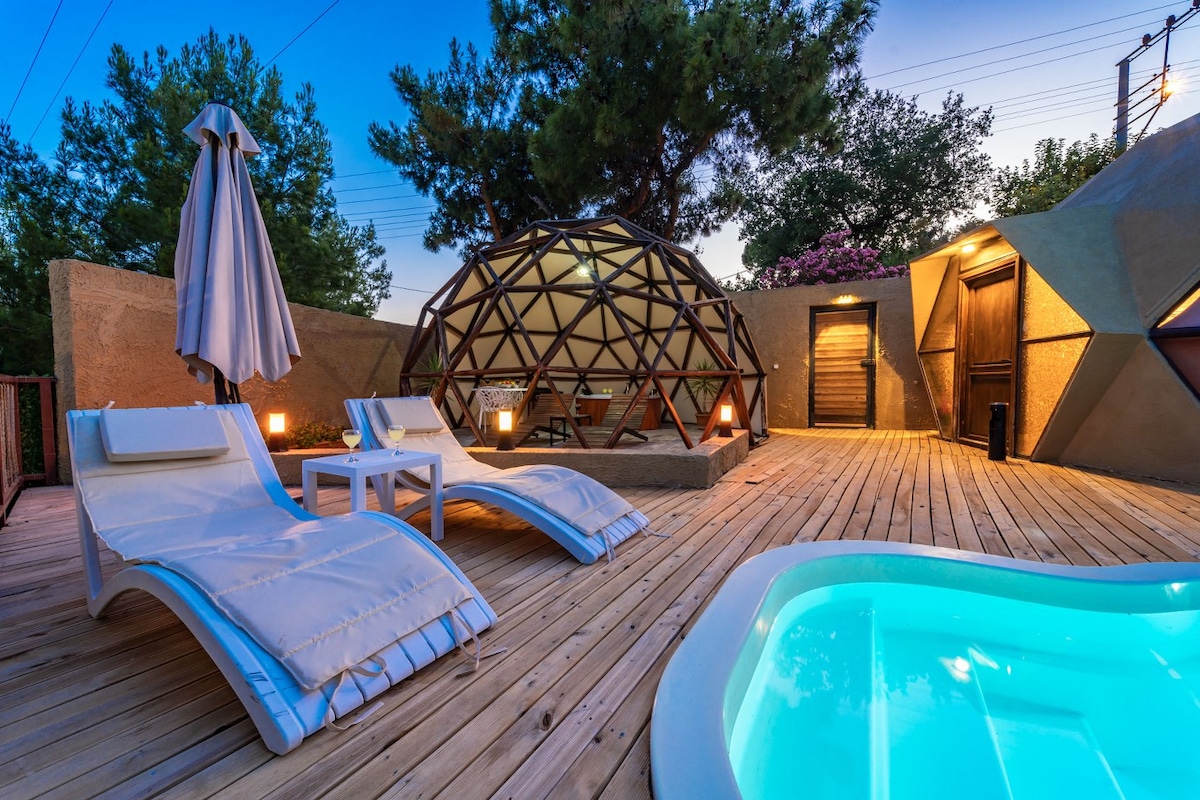 Dôme Glamping pour 2 personnes avec piscine chauffée et jacuzzi