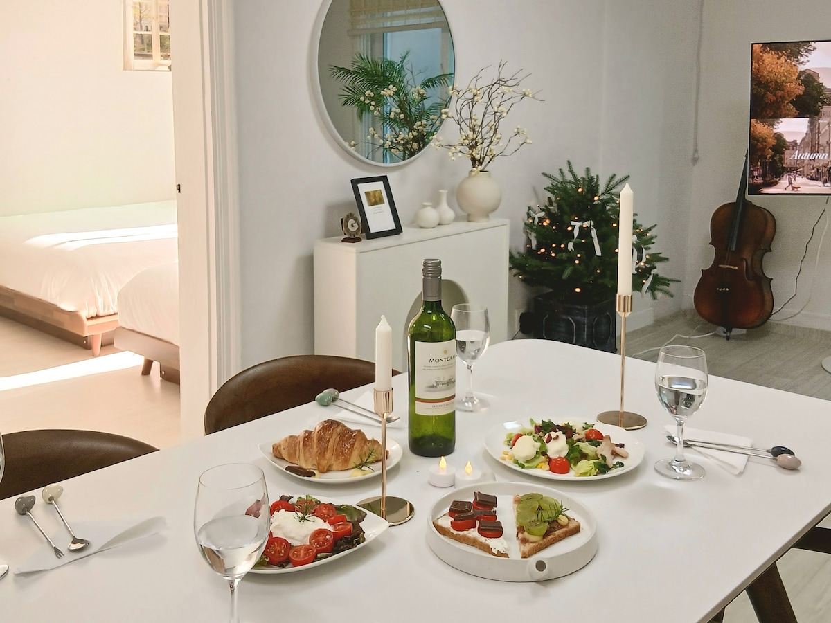🏡 Dans la nouvelle ville de Pangyo Daejang-dong, calme et aéré au deuxième étage d'un immeuble commercial nouvellement construit C'est un studio sentimental de deux pièces. - Un parking extérieur est disponible au premier étage du bâtiment lui-même, Il y a deux chambres et deux lits, donc si vous êtes un voyageur de moyenne à longue durée pour les familles avec enfants et les voyageurs avec des chiens C'est le meilleur endroit :) - Le style calme mais sensuel du ton blanc Profitez de la musique, des films et de la détente dans votre logement