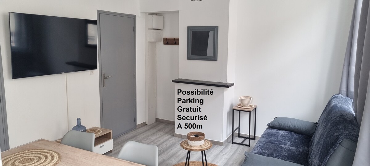We welcome foreign travelers with great pleasure ! Appartement rénové au 2eme étage. Idéal pour 2 personnes (votre bébé est bienvenu :) avec place de parking sécurisé. WIFI, machine Senseo, plaque vitrocéramique et tout le nécessaire sur place. Huile, sucre, sel, poivre, draps, serviettes, gel douche et shampoing sont à votre disposition. Cuisine équipée, coin détente avec smart télé muni de son bras articulé pour la regarder dans le canapé ou le lit avec matelas 520 ressorts ensachés :)