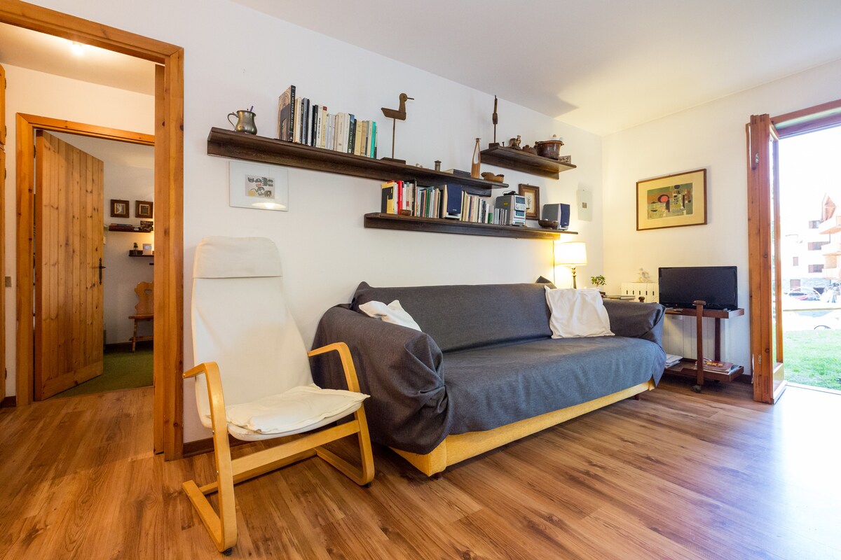 À 5 minutes du centre d'Aoste et du poste de péage de l'autoroute, au début de la vallée du Gran San Bernardo Emplacement stratégique pour accéder aux installations de ski et aux promenades en montagne et visiter les châteaux. Terrain de jeux à 100 mètres. Appartement dans une maison simple pour 5 personnes avec cuisine, 2 chambres, salle de bain et séjour avec canapé-lit. Zone verte de pertinence, Parking privé et garage pour rangement de ski, vélo et moto. Nourriture et banque à 300 mètres. Arrêt de bus à 50 mètres.