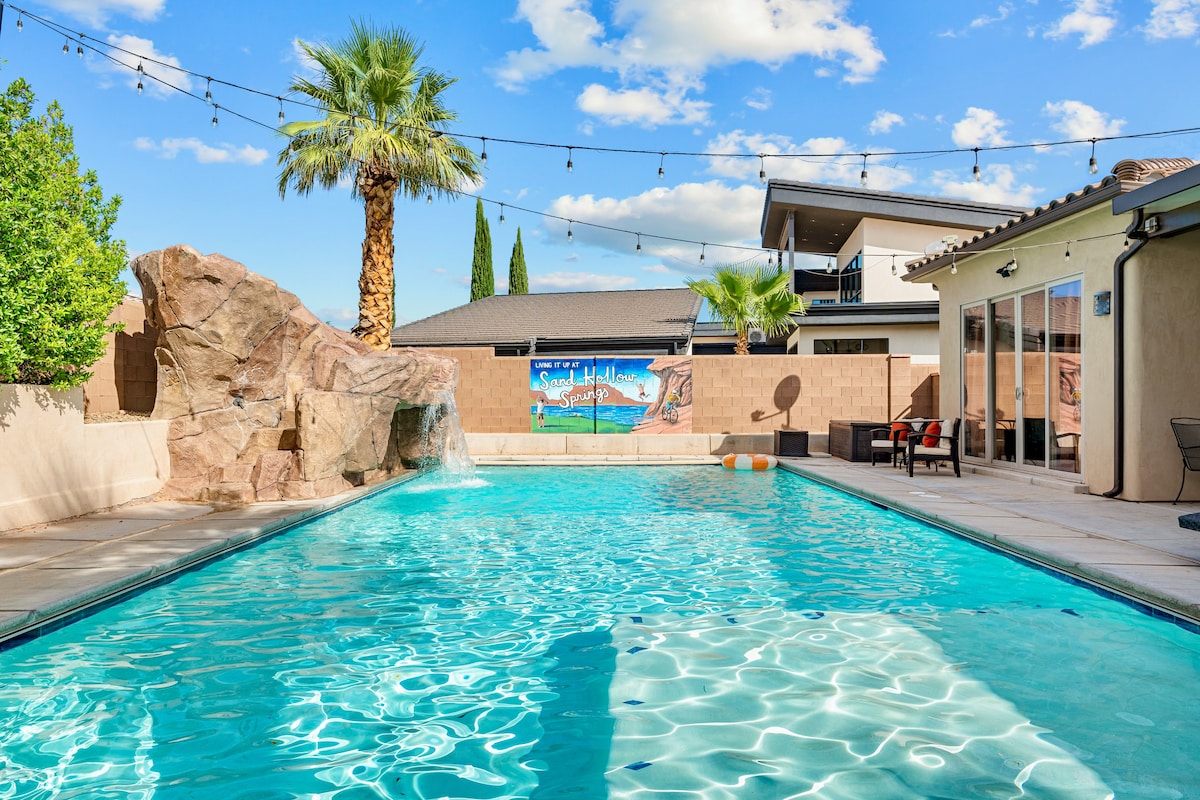 “Grand Gathering Retreat” at Sand Hollow ★ "Beautiful home, lots of space super close to Sand Hollow" ☞ 5 King Suites all w/ Bathrooms ☞ Private Heated Pool w/ volleyball & basketball ☞ Game Room w/ 85” TV+Foosball ☞ Fully Equipped+Stocked Kitchen ☞ Free Resort Access (splash pad+pools+gym) ☞ 4 Hole Putting Green ☞ SXS/ATV riding at Sand Hollow - Partnered with St. George UTV Rentals for great discounts for our guests ☞ Castle Themed Bunk Room and Kid Play area 5 mins → Sand Hollow State Park