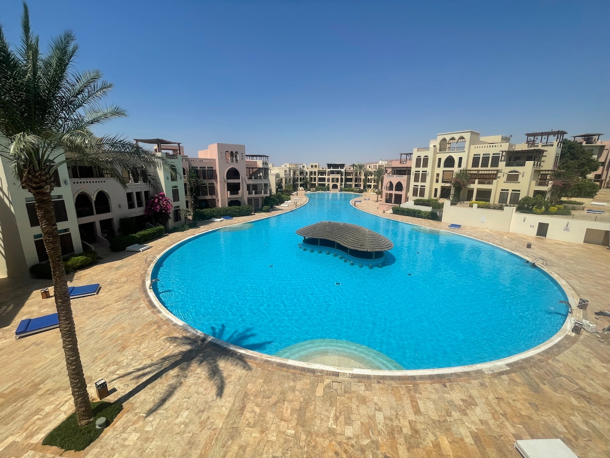Détendez-vous en famille dans ce logement paisible. Un confortable appartement de deux chambres et demie situé dans le complexe TalaBay à Aqaba en Jordanie. Accès direct au rez-de-chaussée à la piscine. La salle de sport et d'autres activités sont à quelques pas. Elle dispose d'une grande terrasse, d'un barbecue, d'une cuisine entièrement équipée. La plage de la mer Rouge se trouve également à quelques pas. Le complexe hôtelier propose des plages de sable privées. Restauration, shopping et sports nautiques, y compris la plongée sous-marine, le snorkeling, la natation, le parachute ascensionnel, les dîners au coucher du soleil en croisière, le yachting.