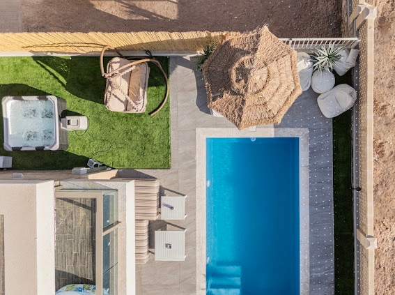 Un appartement privé et décoré avec 3 chambres, 2 douches (dont une dans la chambre principale), un salon chaleureux avec une sortie vers un jardin calme, une cuisine entièrement équipée comprenant une machine à expresso, et deux cours avec un jacuzzi, des sièges, une table à manger, un barbecue au charbon de bois et une douche extérieure. Design naturel avec du bois et des cenadas, ambiance détendue et arôme luxueux du désert. Une expérience intime, paisible et luxueuse, parfaite pour ceux qui recherchent un moment de véritable déconnexion. Wifi, climatisation, parking et service personnalisé 24h/24 et 7j/7. Conçu pour les familles. Couples ou groupes avec autorisation préalable uniquement. Pas de fêtes ni de musique forte.