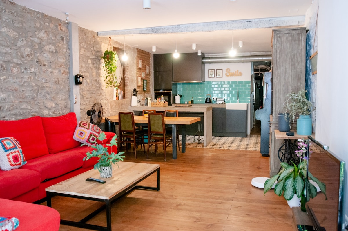 Loft de 50 m² entièrement refait à neuf composé d'une pièce de vie et d'une chambre, agrémenté d'une terrasse et d'un petit jardin. Accès par une étroite ruelle en escalier. Parking gratuit situé à proximité de l'appartement. Possibilité d'arrivée autonome (boîte à clés). Terrasse couverte qui permet de profiter du soleil et d'admirer la vue sur la ville. À 10 minutes à pied du centre historique et de ses nombreuses animations, ainsi que des commerces. Appartement parfaitement équipé .