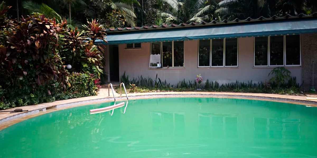 Maison de campagne avec beaucoup de sentiers verts et de cascades