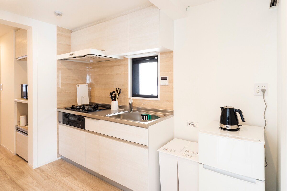 28 m²・lit 1,80 m・15 min à pied de Sensoji・Chambre 302・Cuisine
